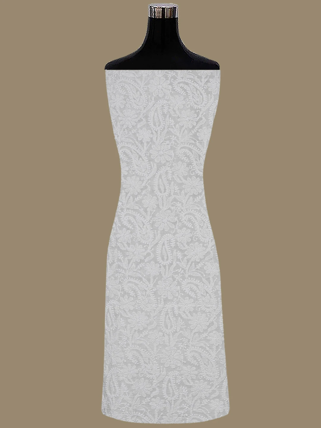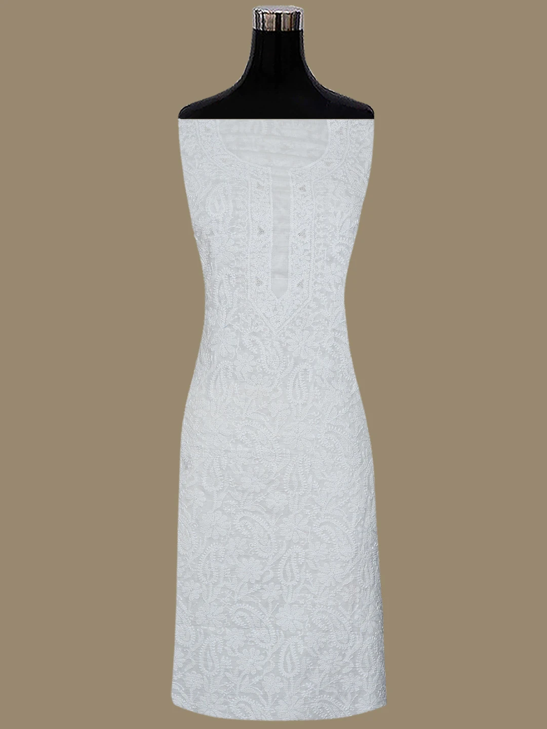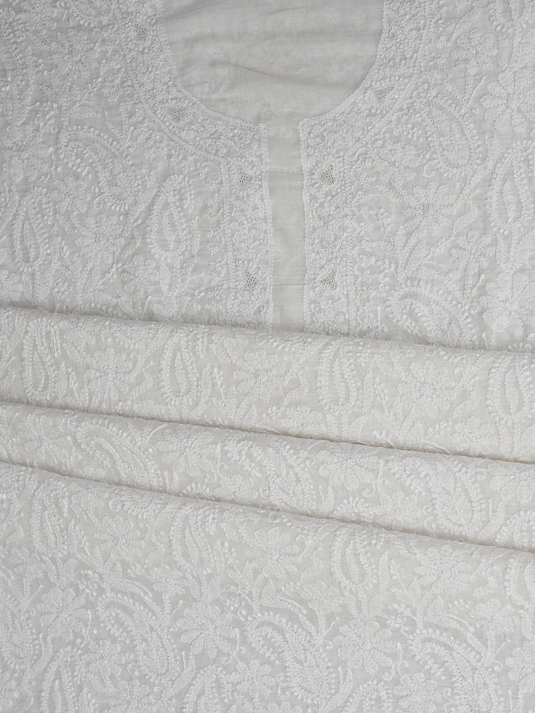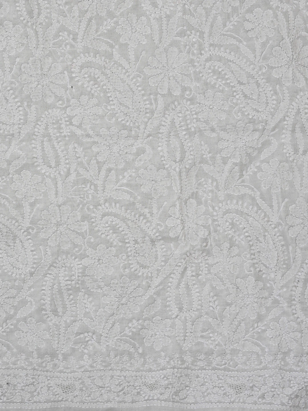 Ada Hand Embroidered White Pure Cotton Lucknowi Chikankari Unstitched Kurta Dupatta Set 01A858197