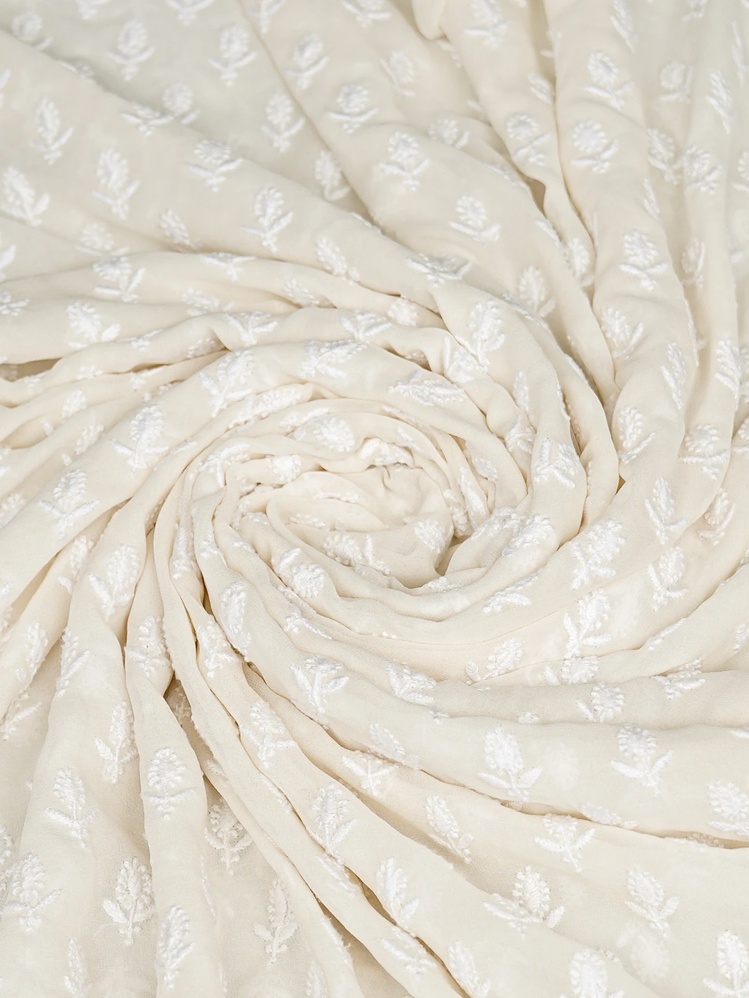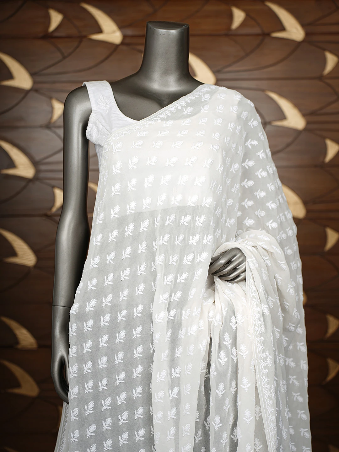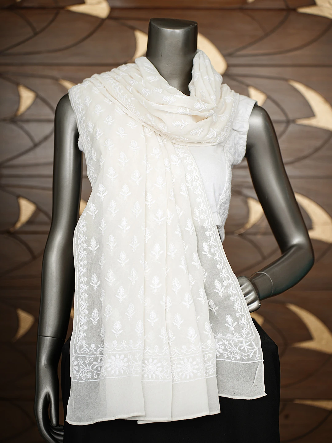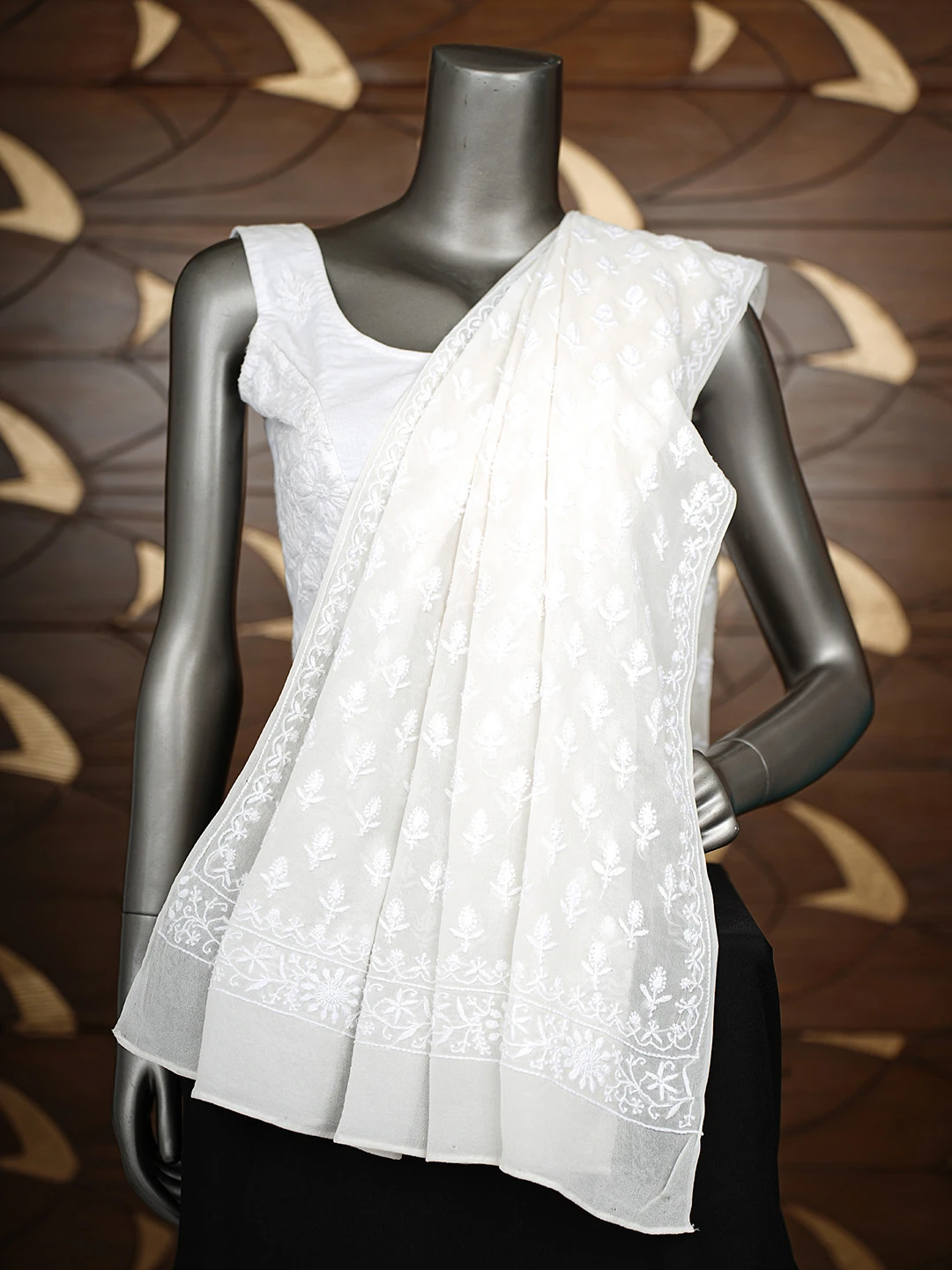 Ada Hand Embroidered White Pure Georgette Lucknowi Chikankari Dupatta 01A675709