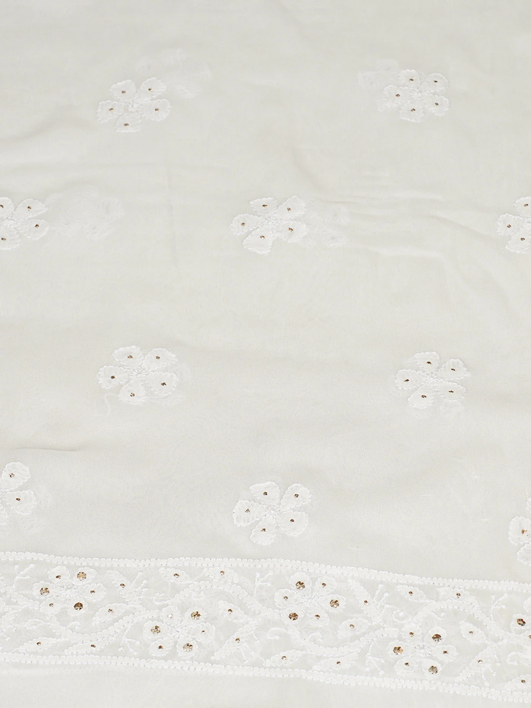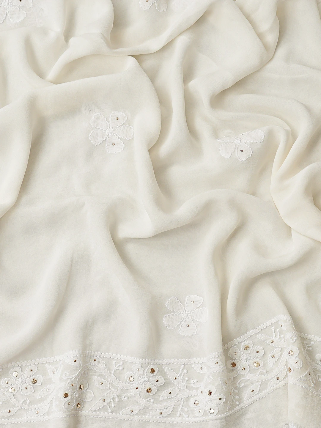 Ada Hand Embroidered White Pure Georgette Lucknowi Chikankari Unstitched Kurta Dupatta Set With Mukaish Work 01A808605