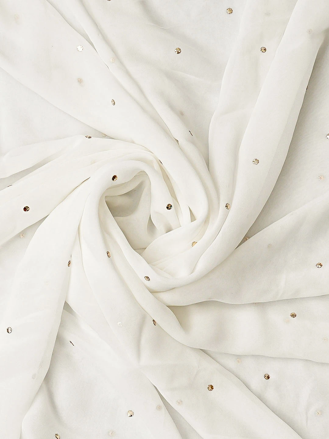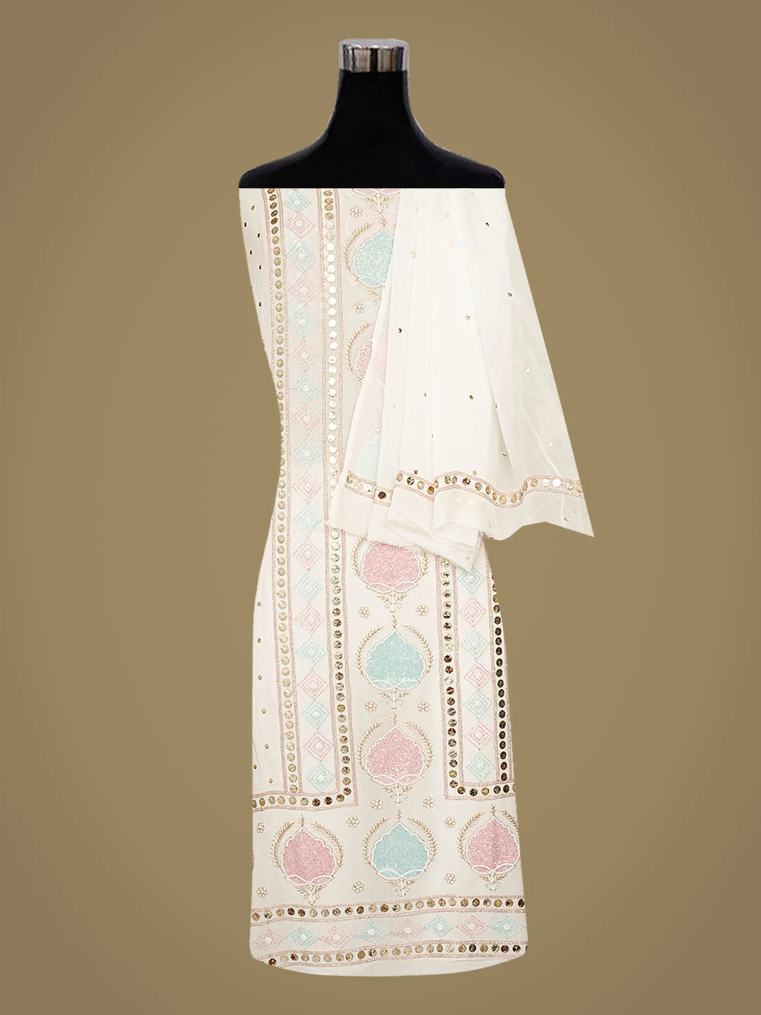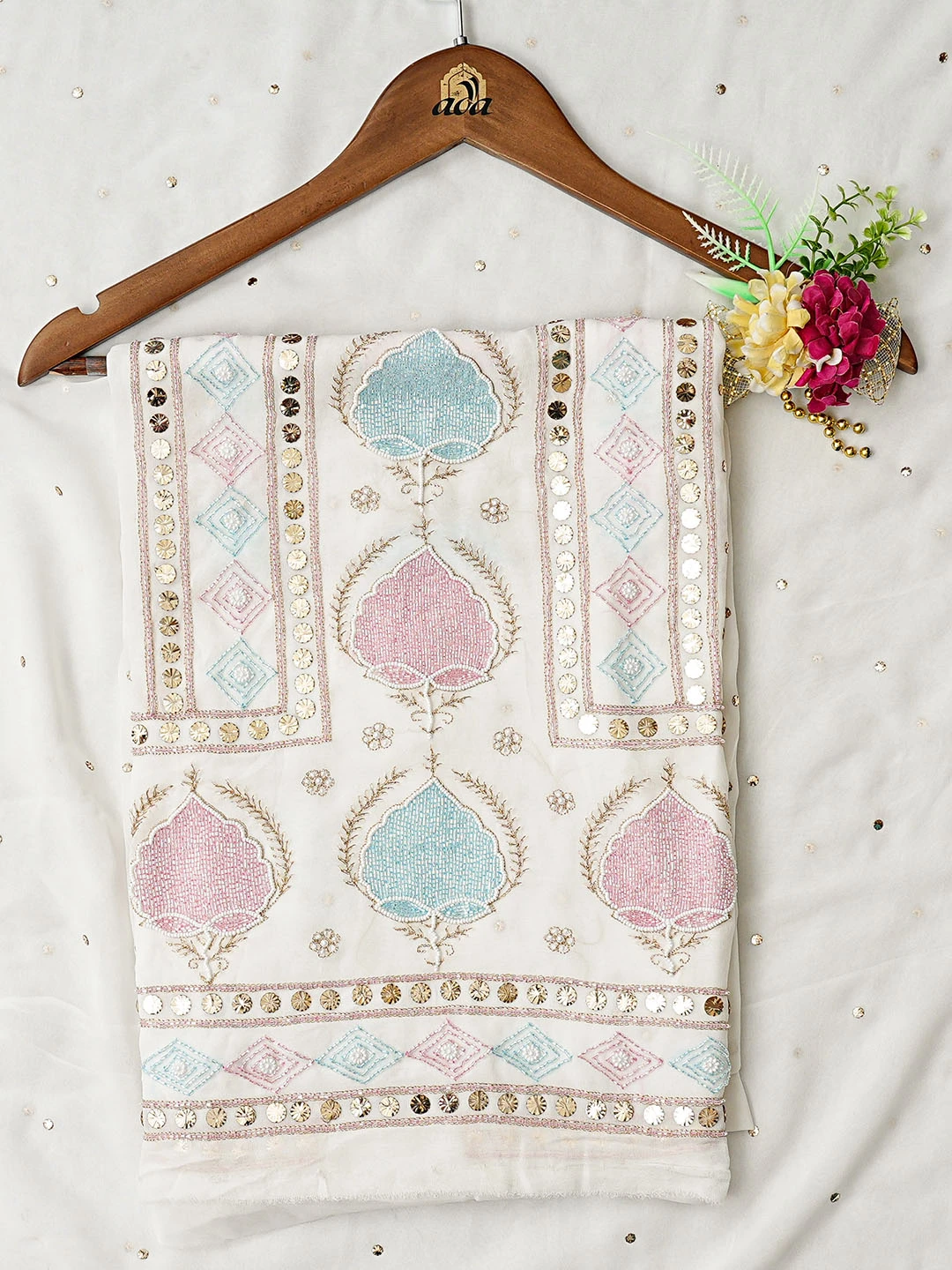 Ada Hand Embroidered White Viscose Georgette Lucknowi Chikankari Unstitched Kurta Dupatta Set With Cutdana Work 01A11131