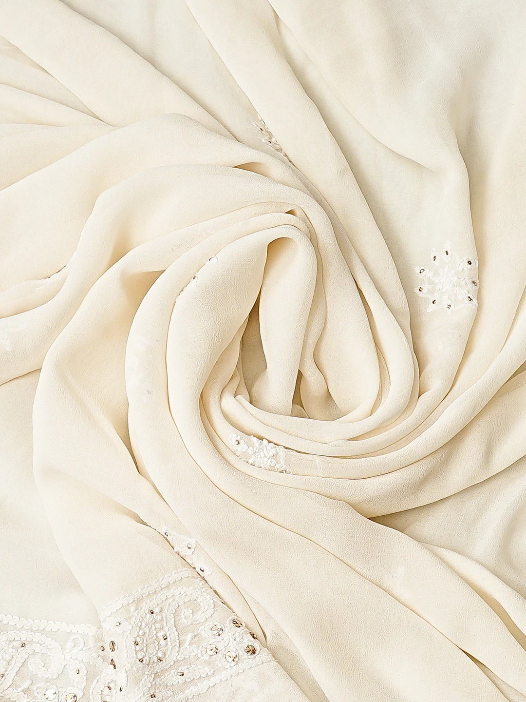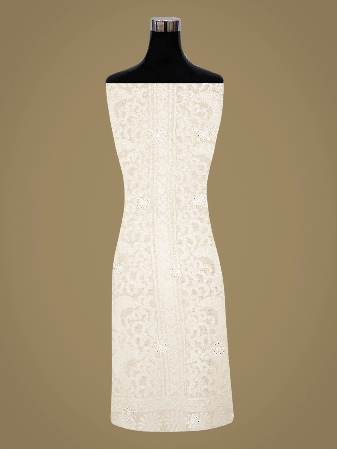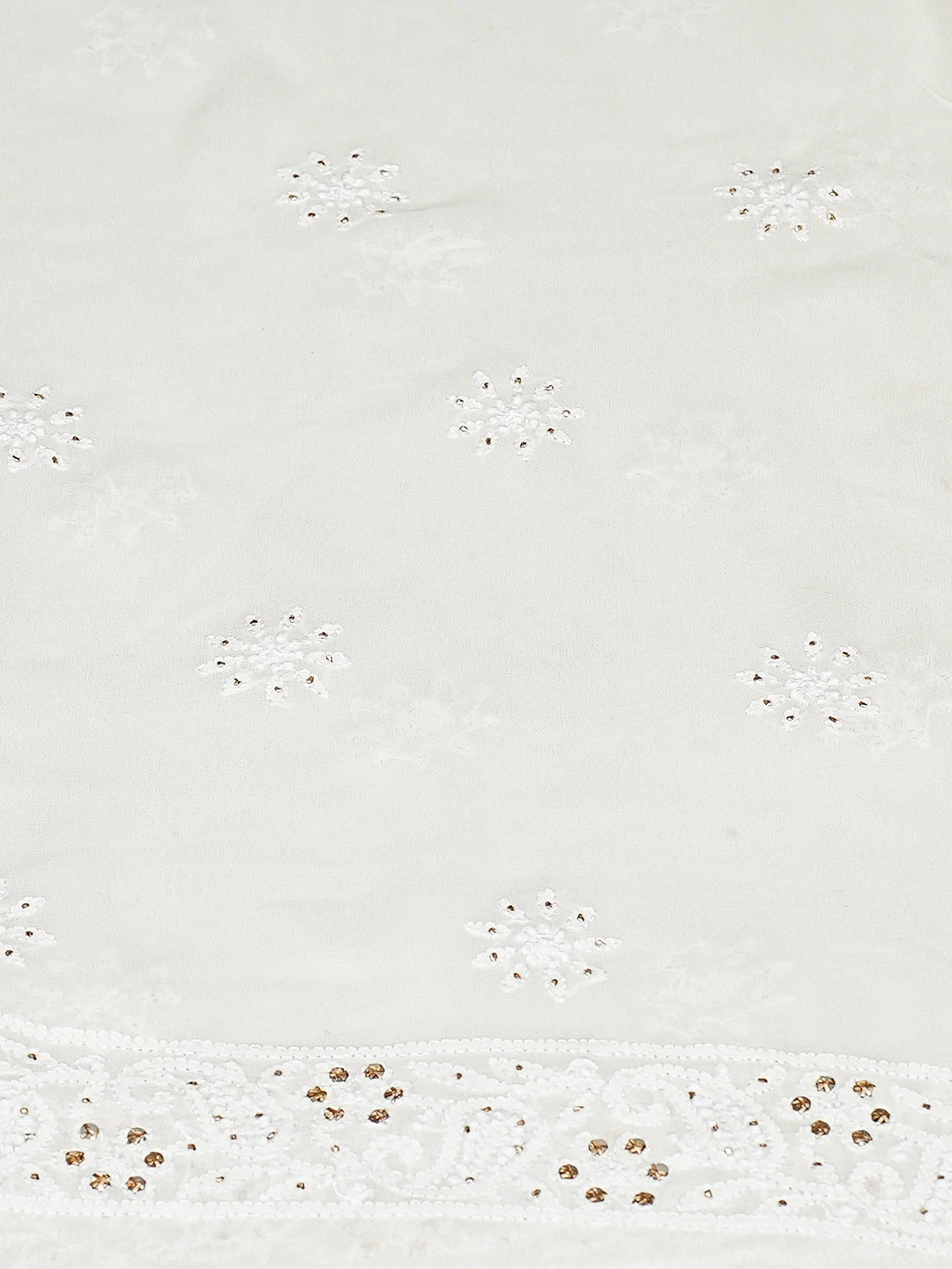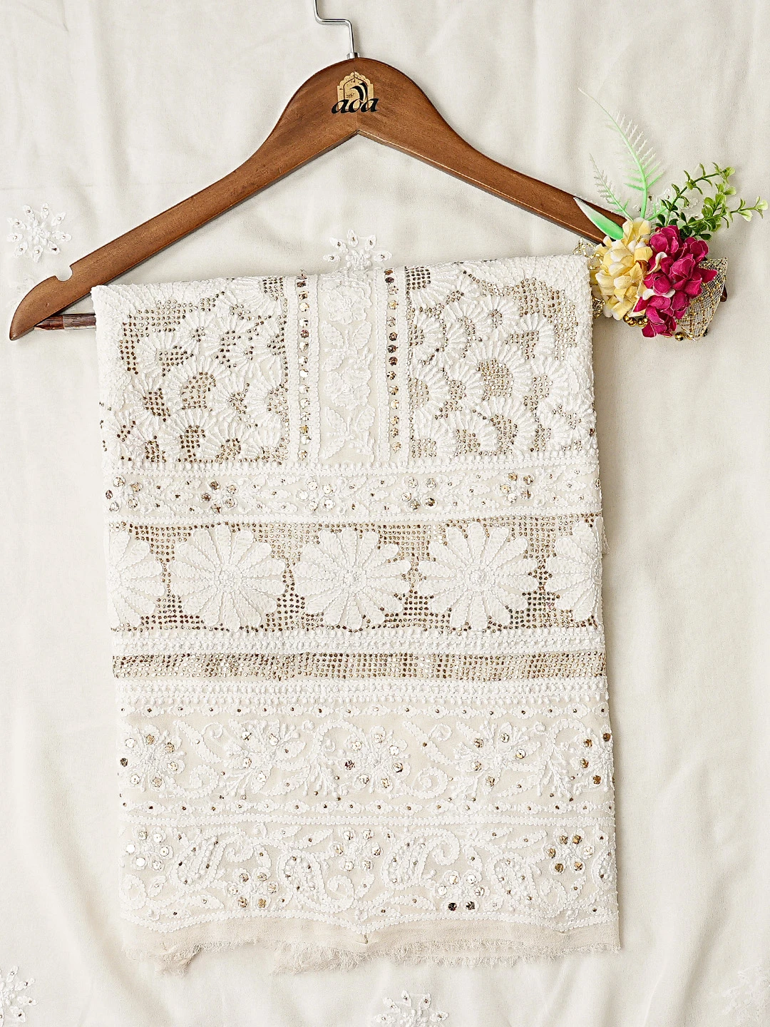 Ada Hand Embroidered White Viscose Georgette Lucknowi Chikankari Unstitched Kurta Dupatta Set With Mukaish Work 01A846075