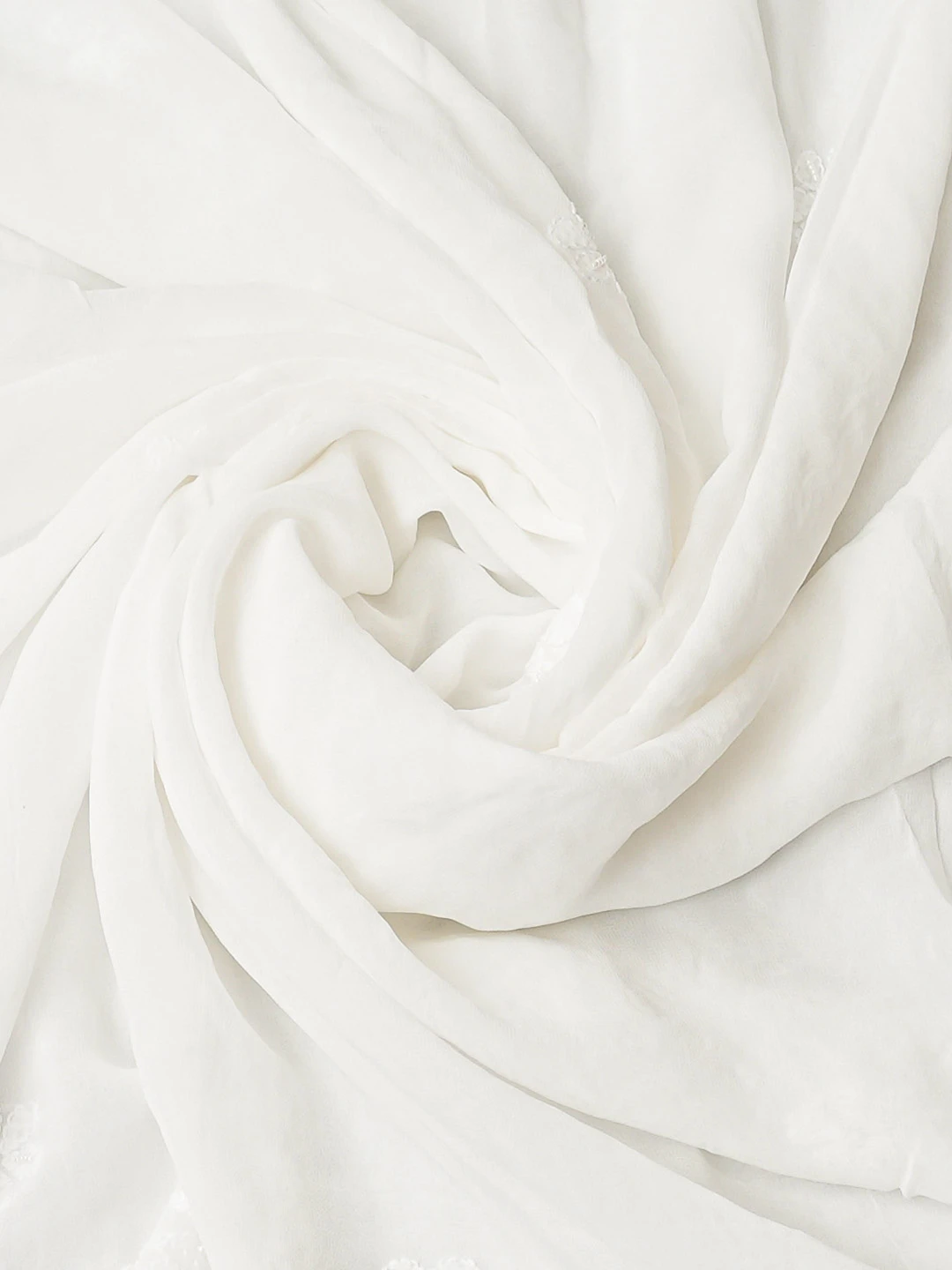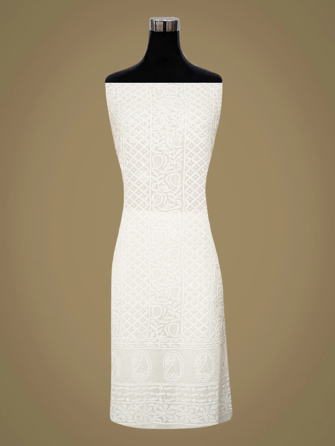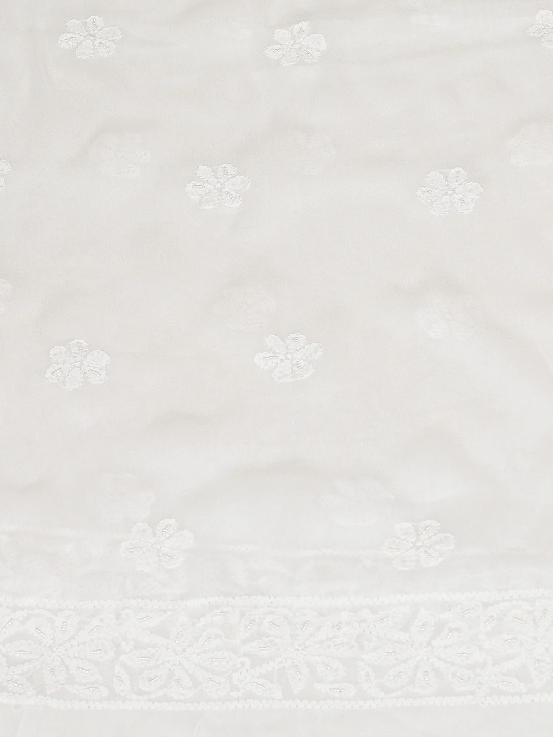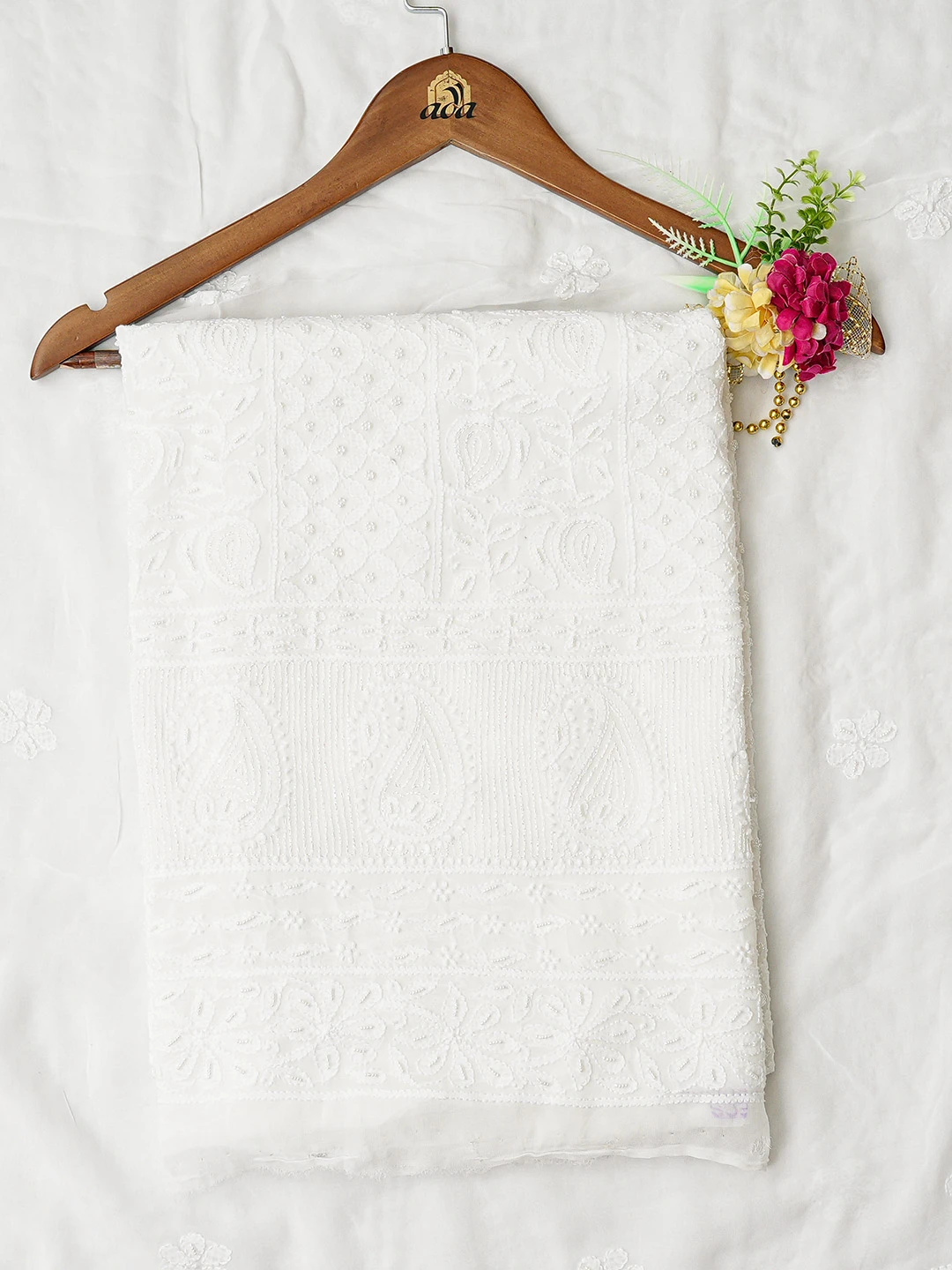 Ada Hand Embroidered White Viscose Georgette Lucknowi Chikankari Unstitched Kurta Dupatta Set With Pearl Work 01A782544