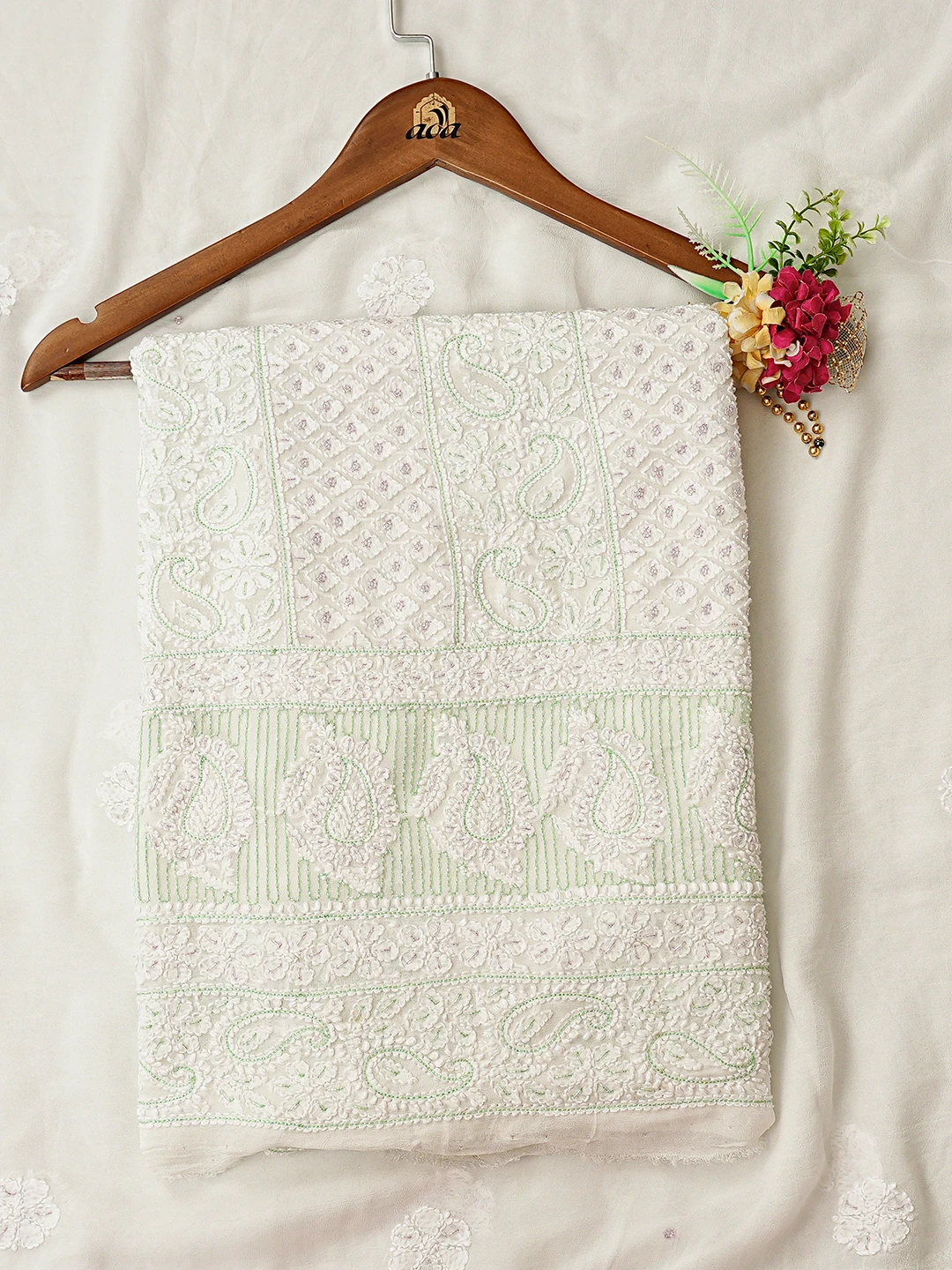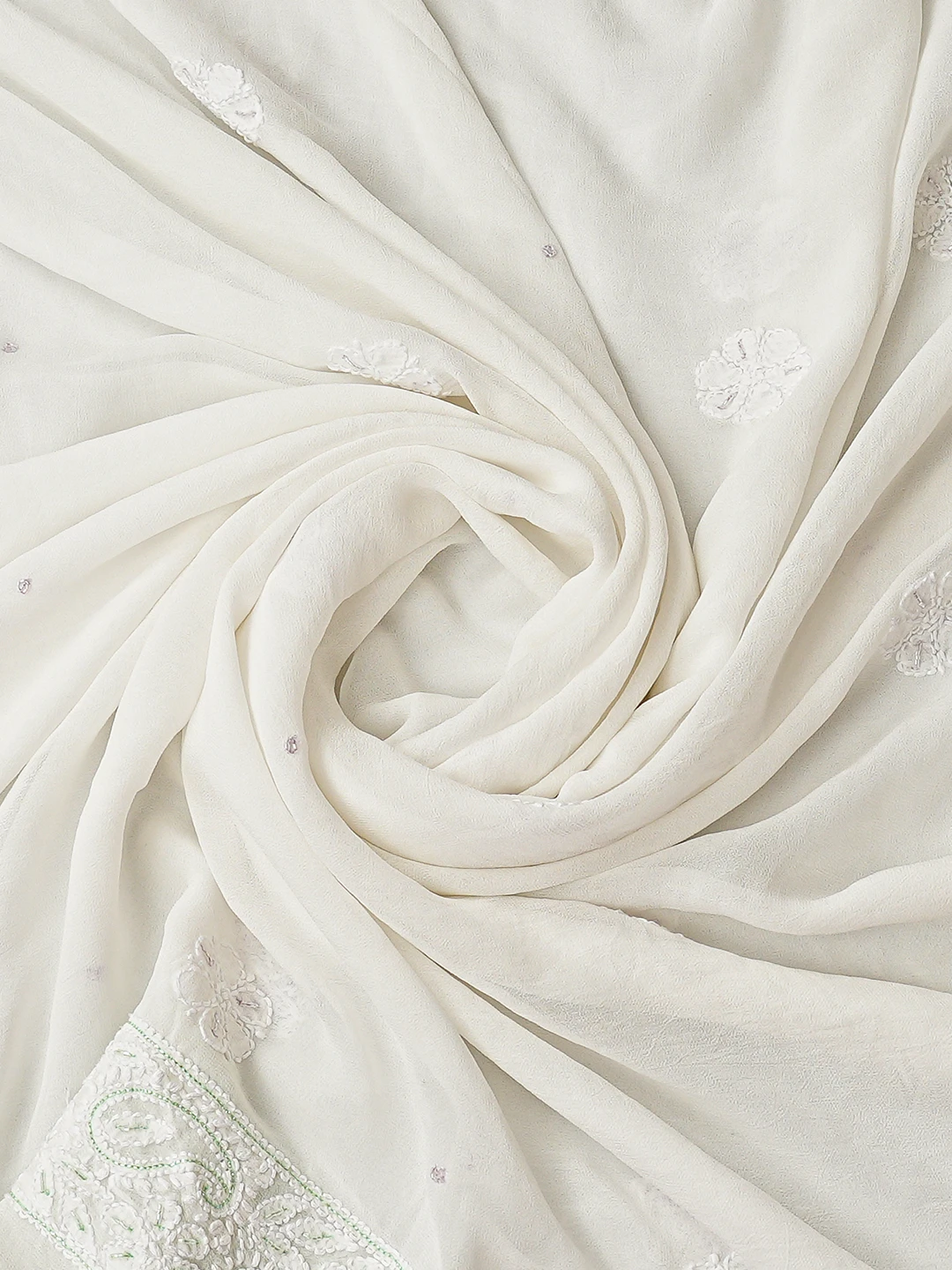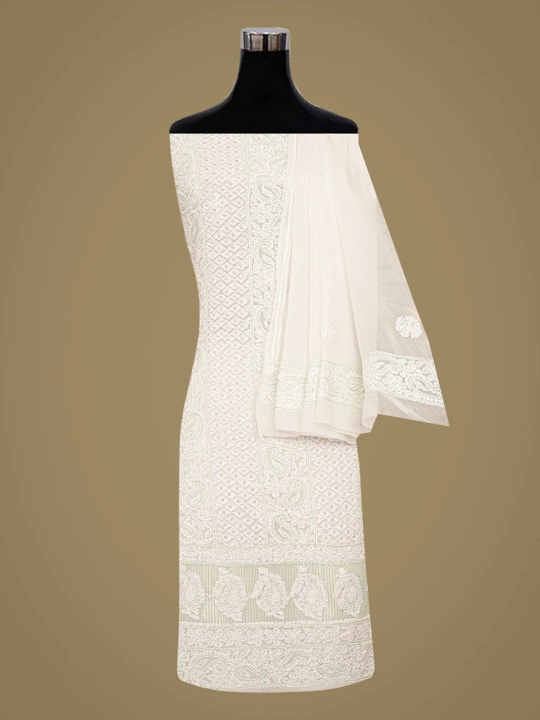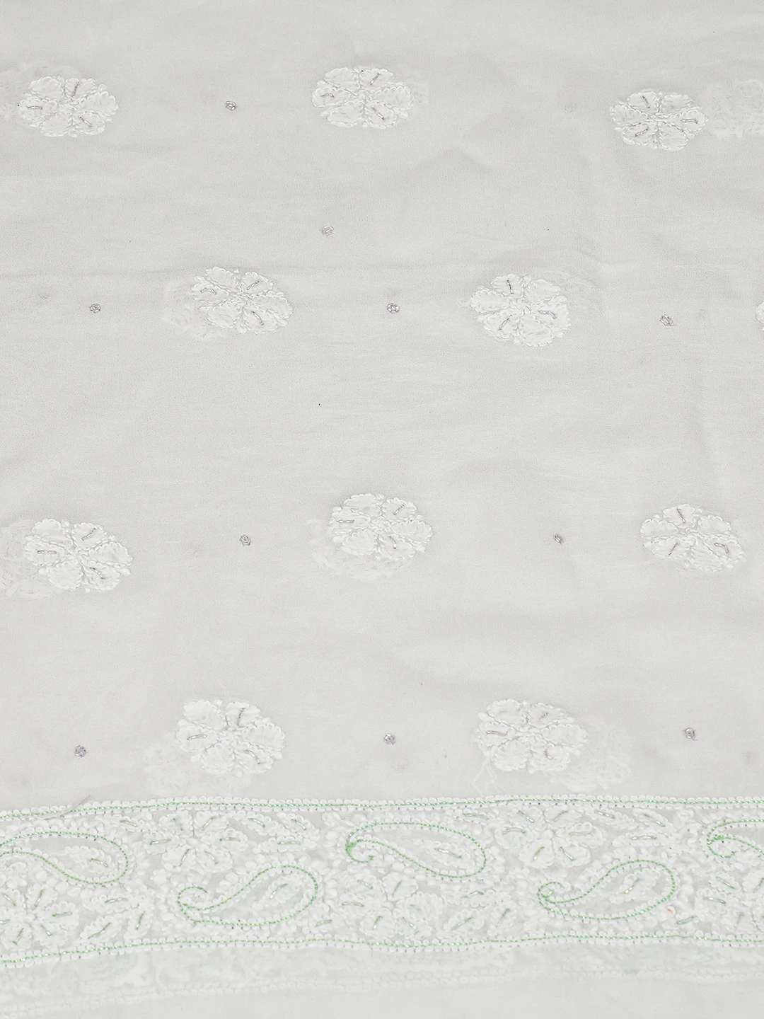 Ada Hand Embroidered White Viscose Georgette Lucknowi Chikankari Unstitched Kurta Dupatta Set With Zari Work 01A792119