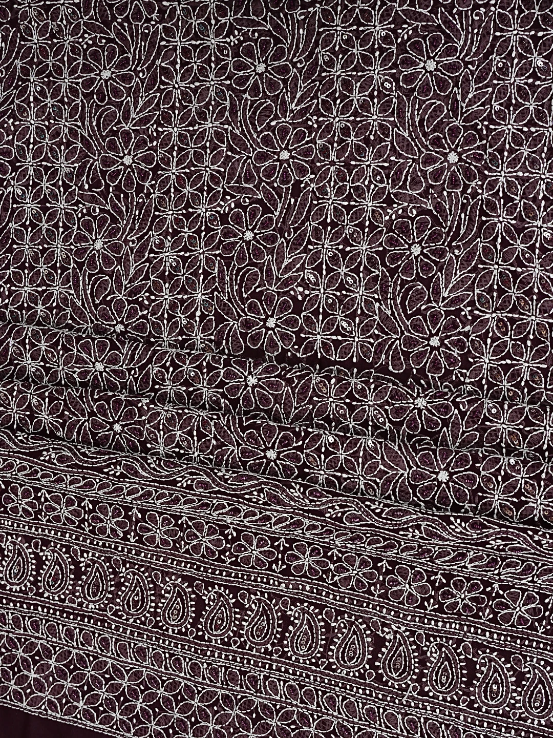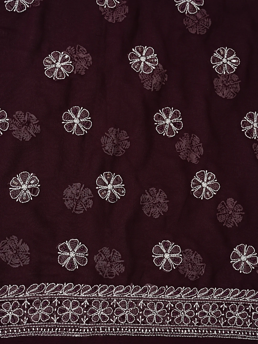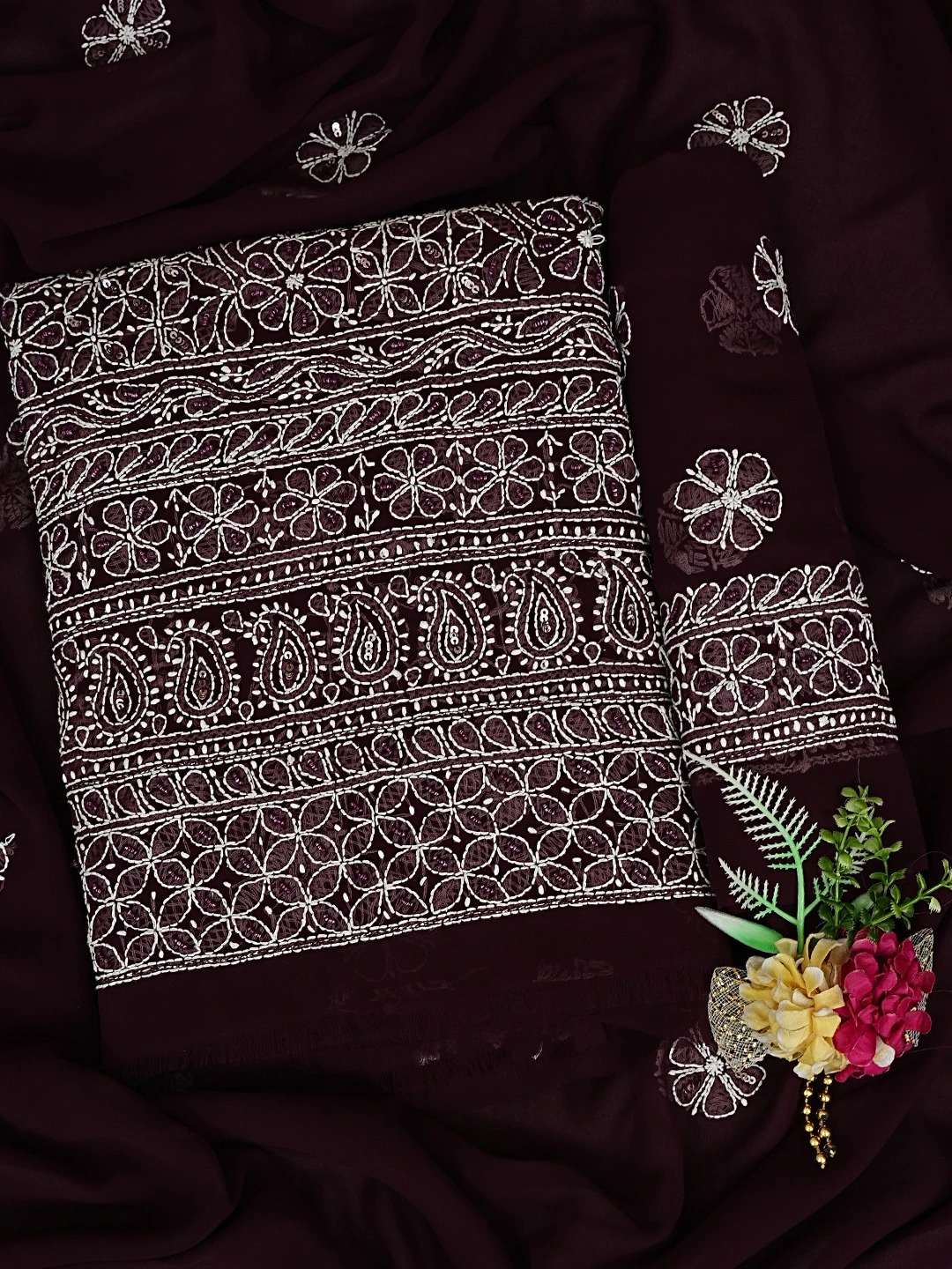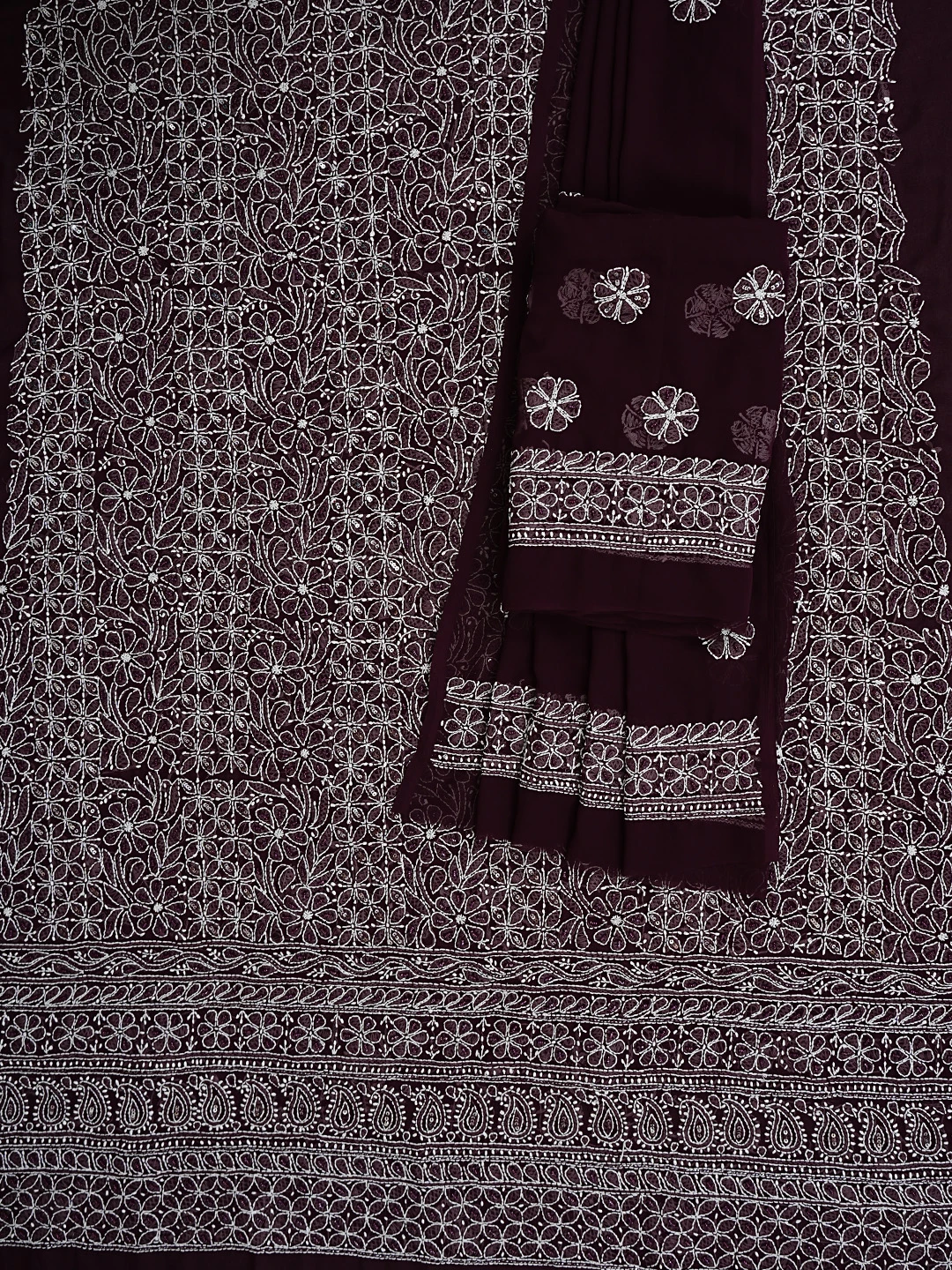 Ada Hand Embroidered Wine Georgette Lucknowi Chikankari Unstitched Suit Piece With Cutdana Work 01A699163