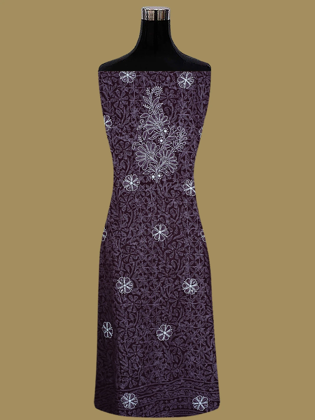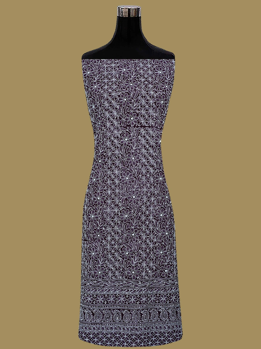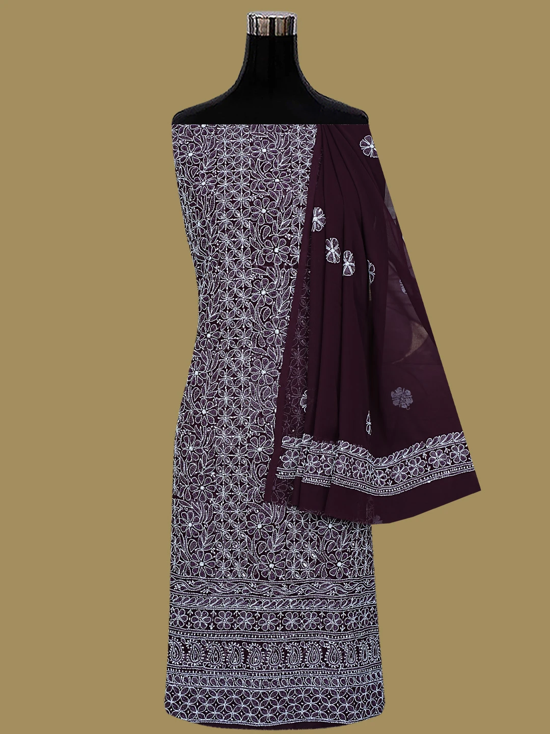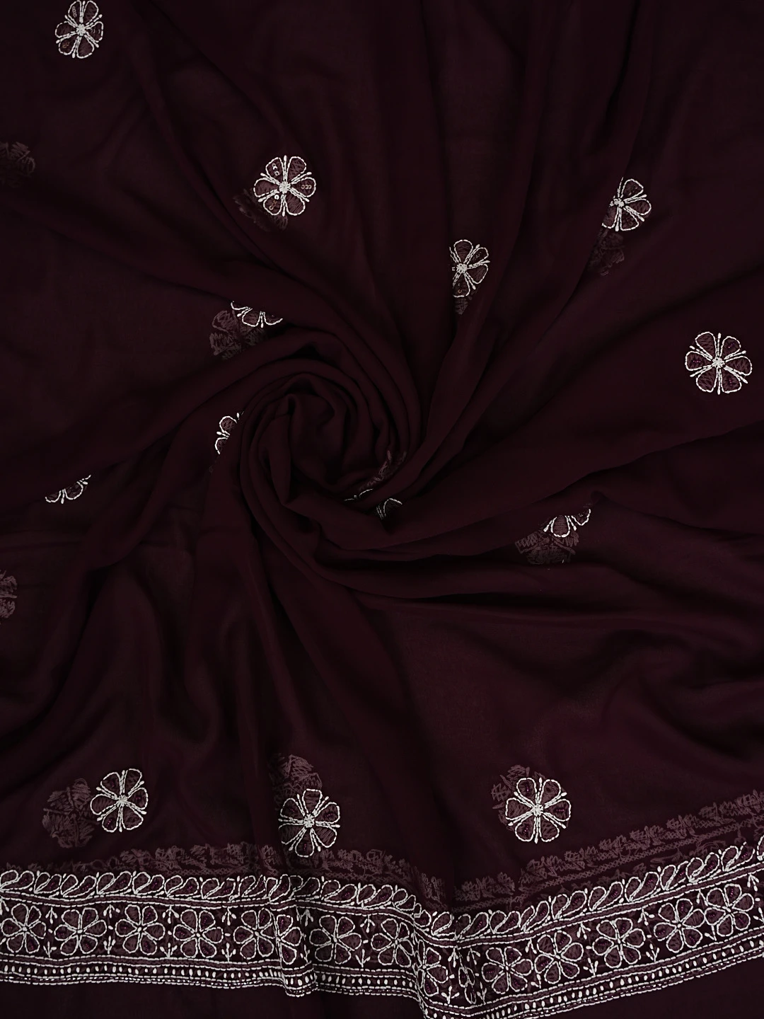 Ada Hand Embroidered Wine Georgette Lucknowi Chikankari Unstitched Suit Piece With Cutdana Work 01A699163