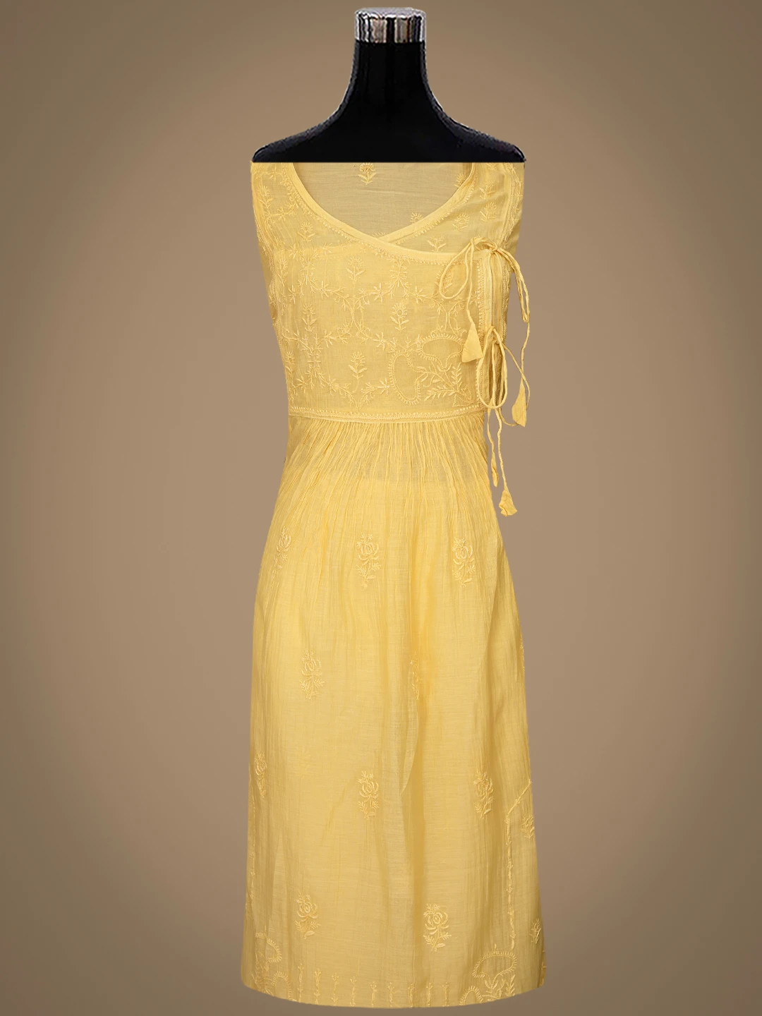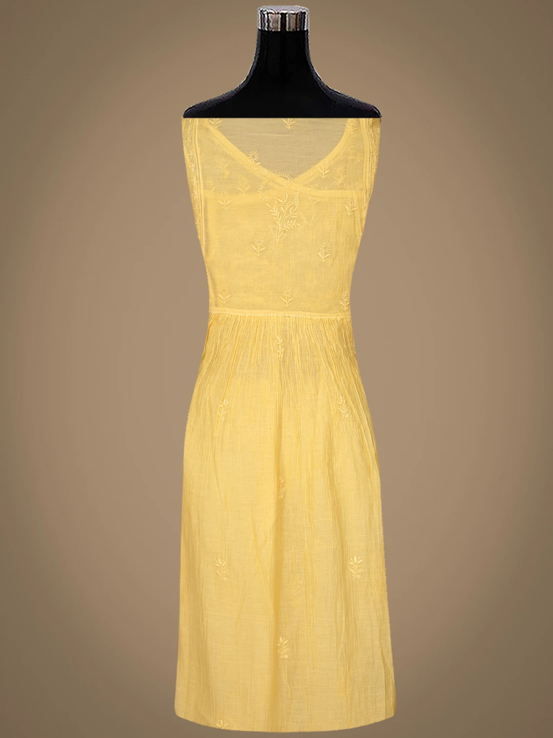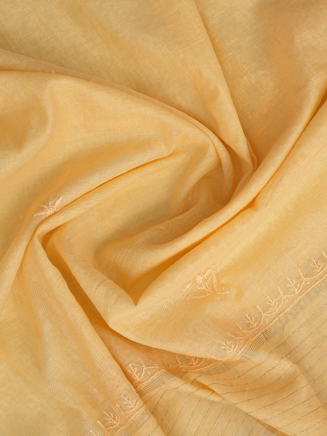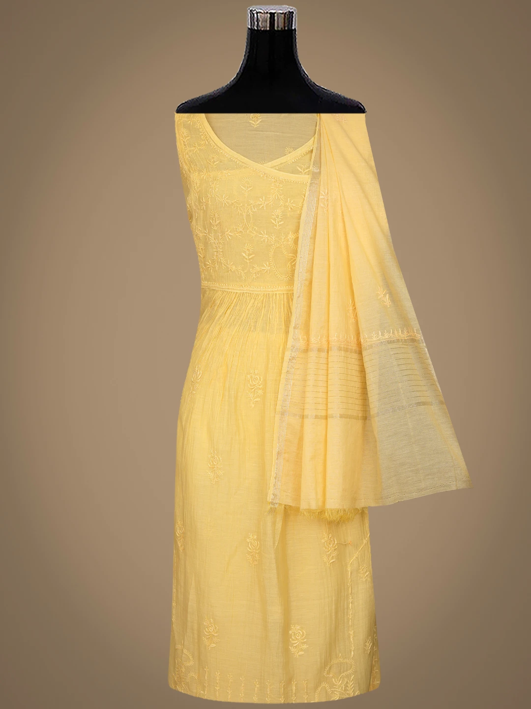 Ada Hand Embroidered Yellow Chanderi Lucknowi Chikankari Semi-Stitched Kurta Dupatta Set 01A741500