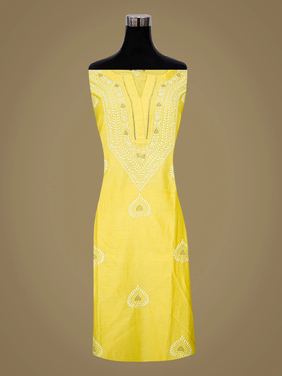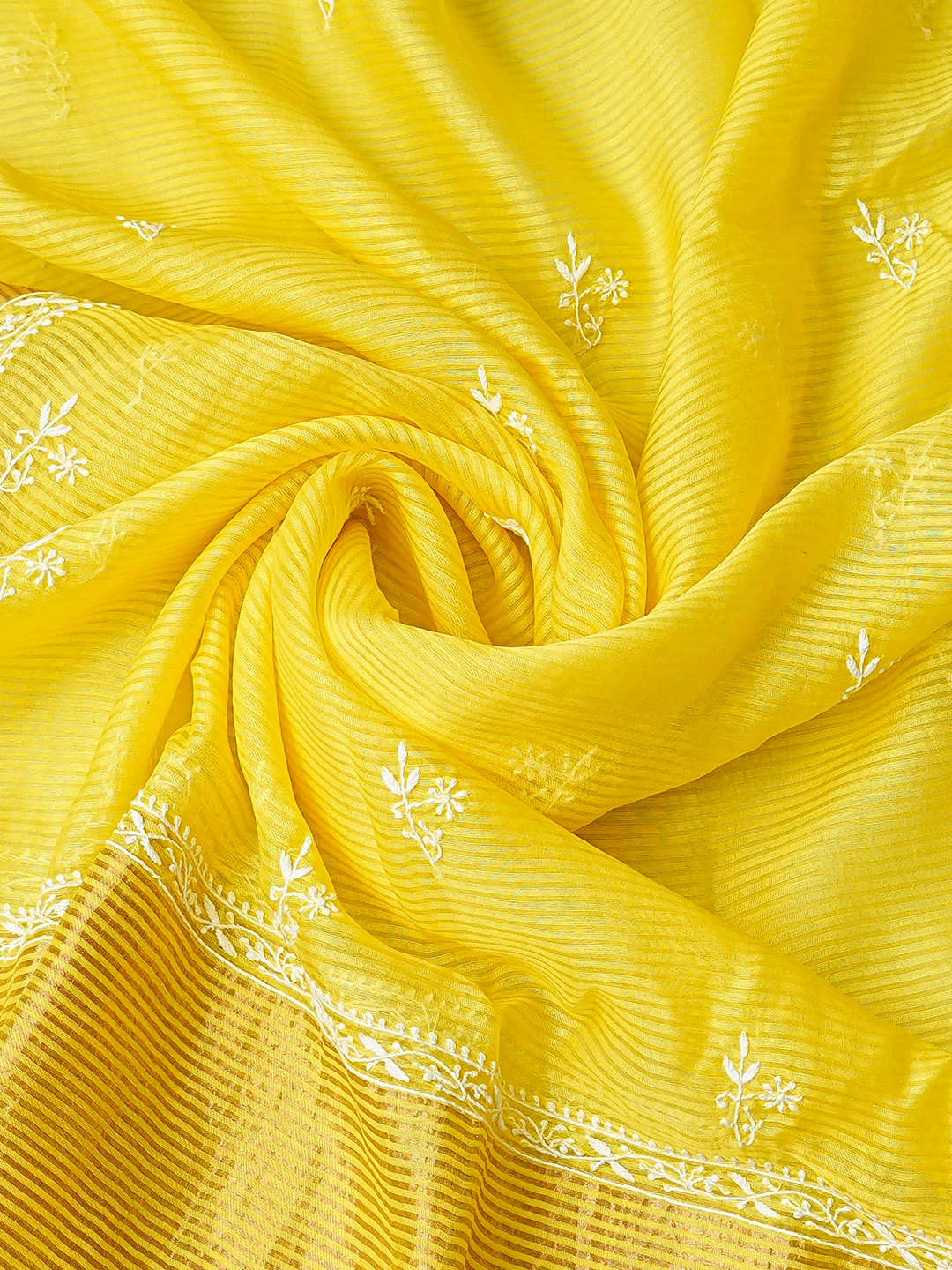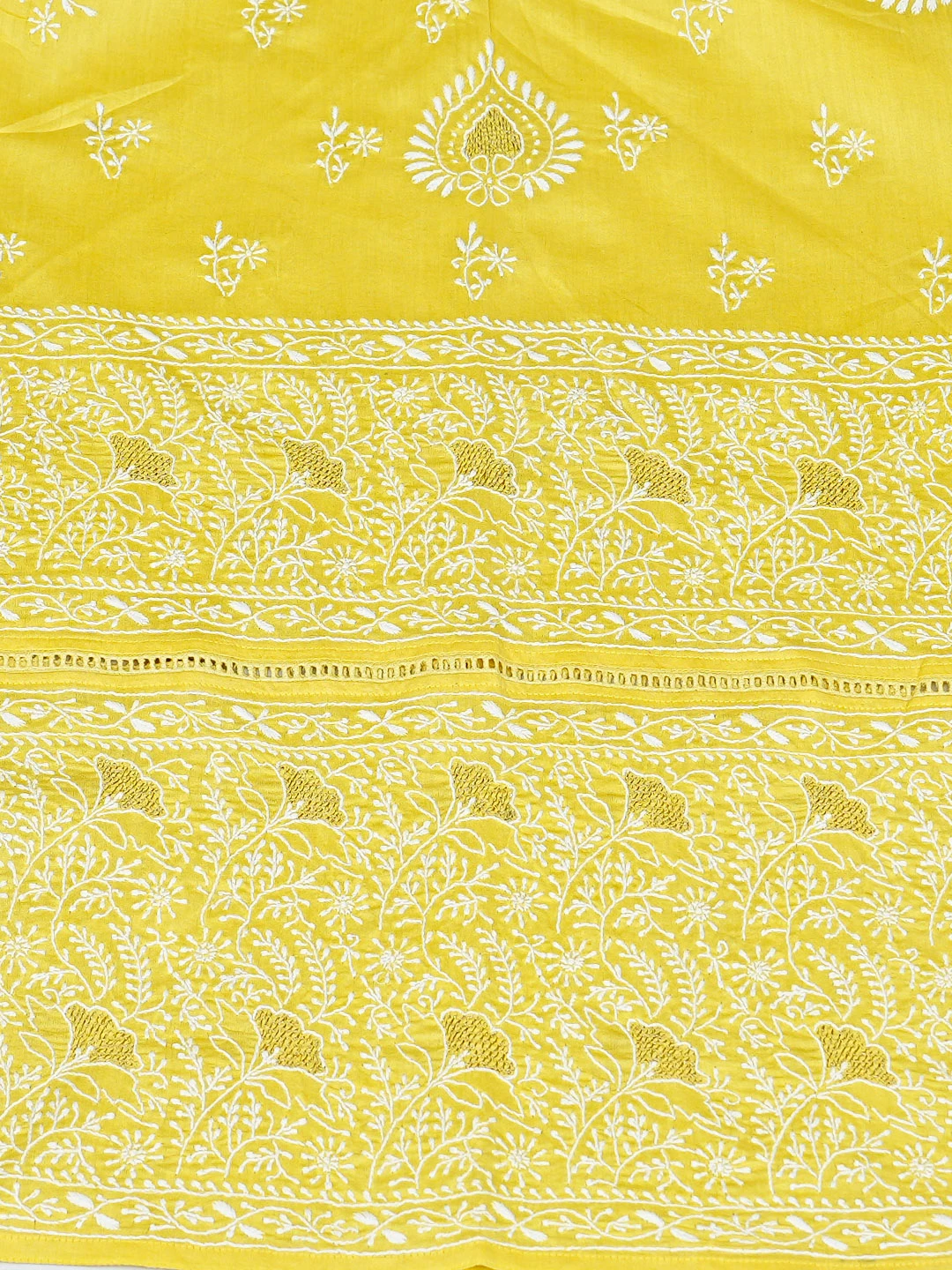 Ada Hand Embroidered Yellow Chanderi Lucknowi Chikankari Semi-Stitched Suit Piece With Zari Work 01A662140