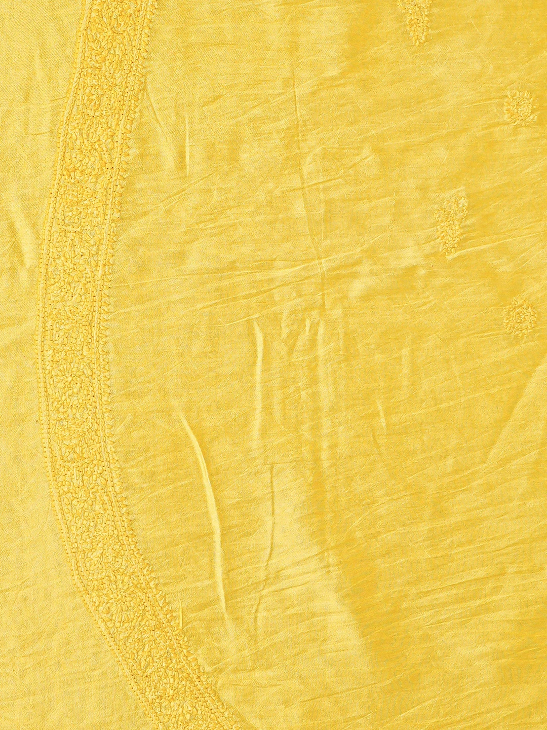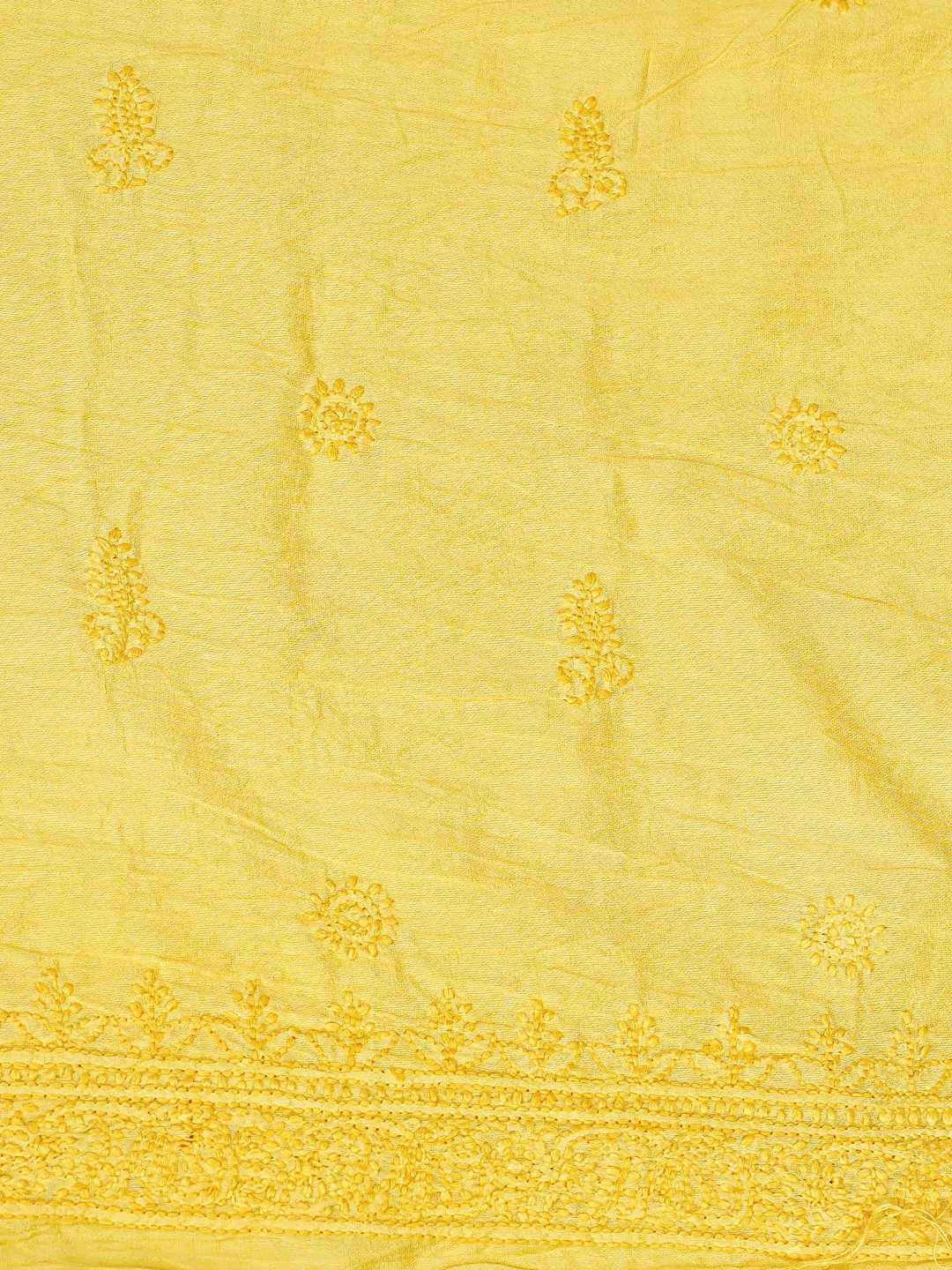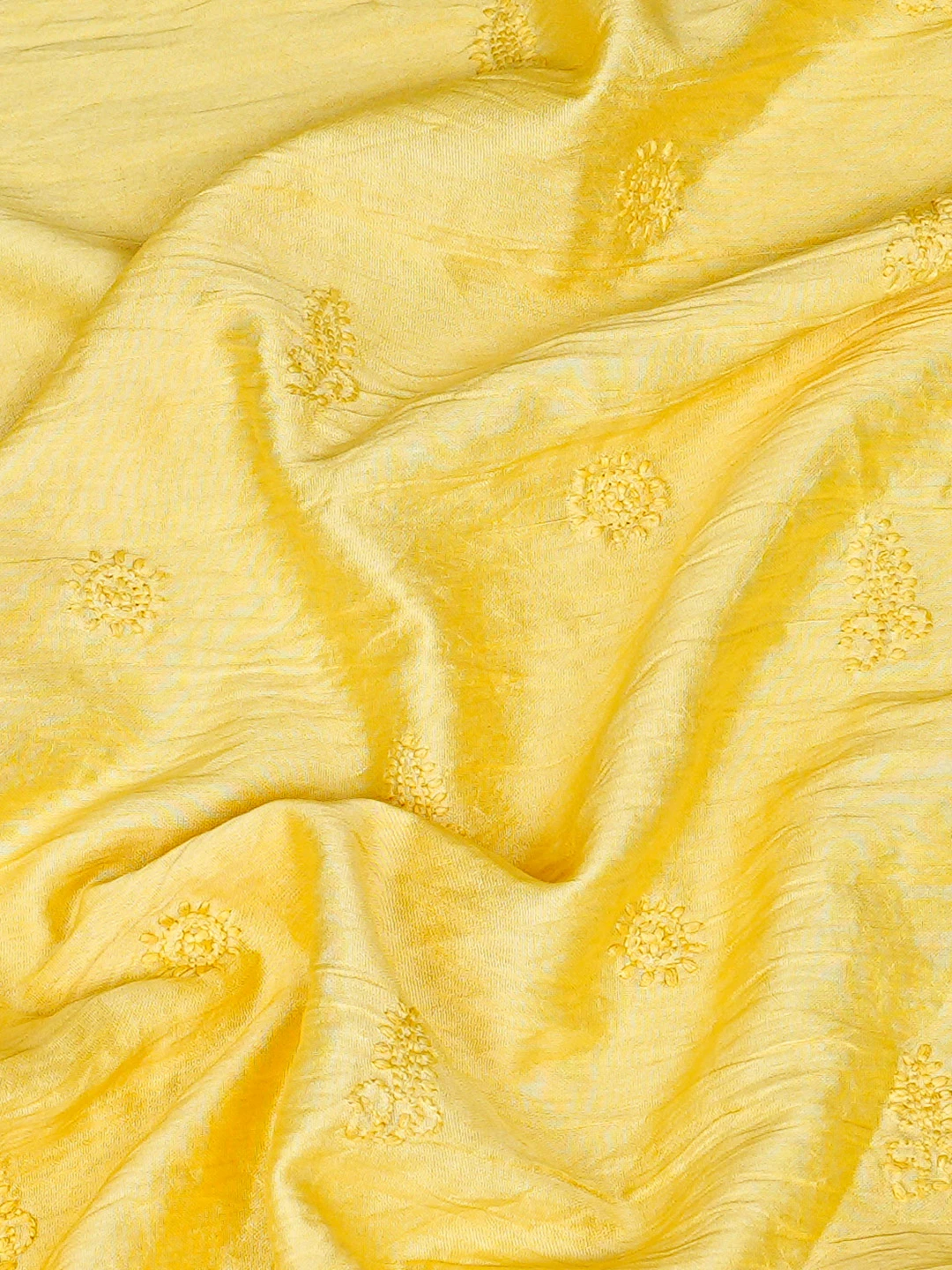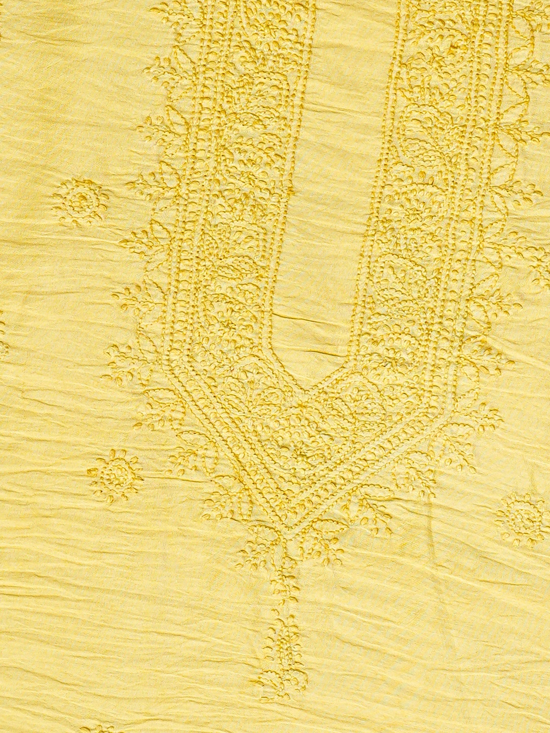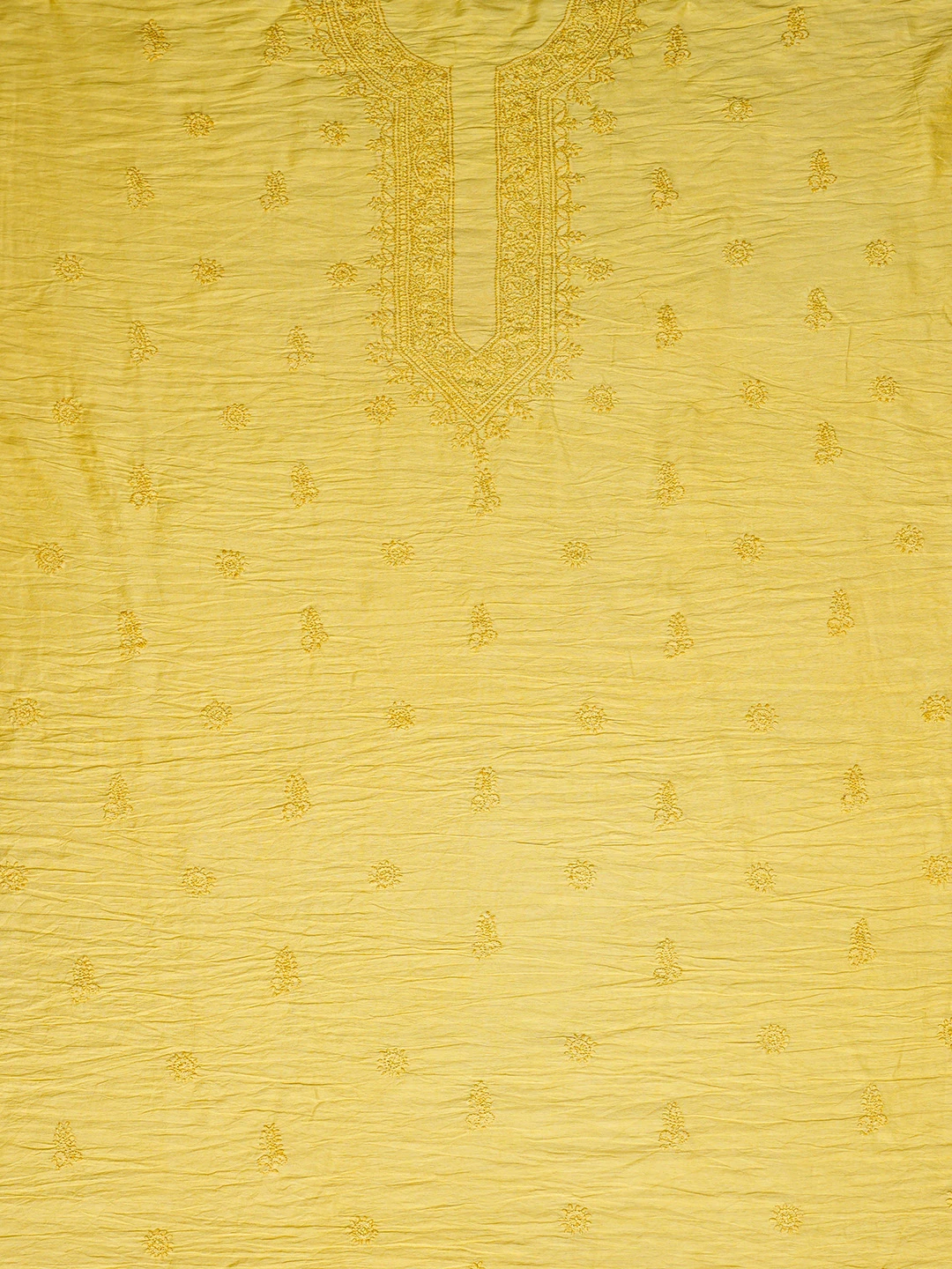 Ada Hand Embroidered Yellow Chanderi Lucknowi Chikankari Unstitched Men's Kurta Piece 01A812577