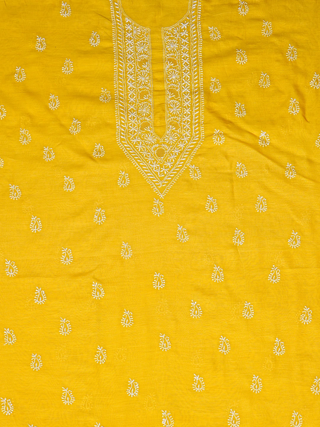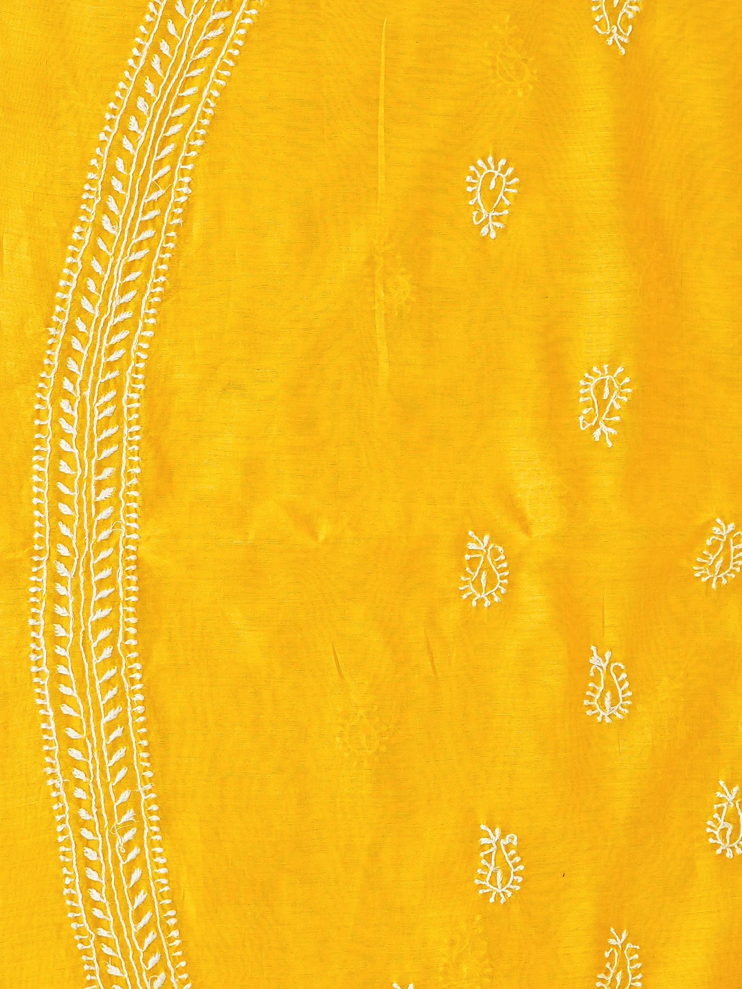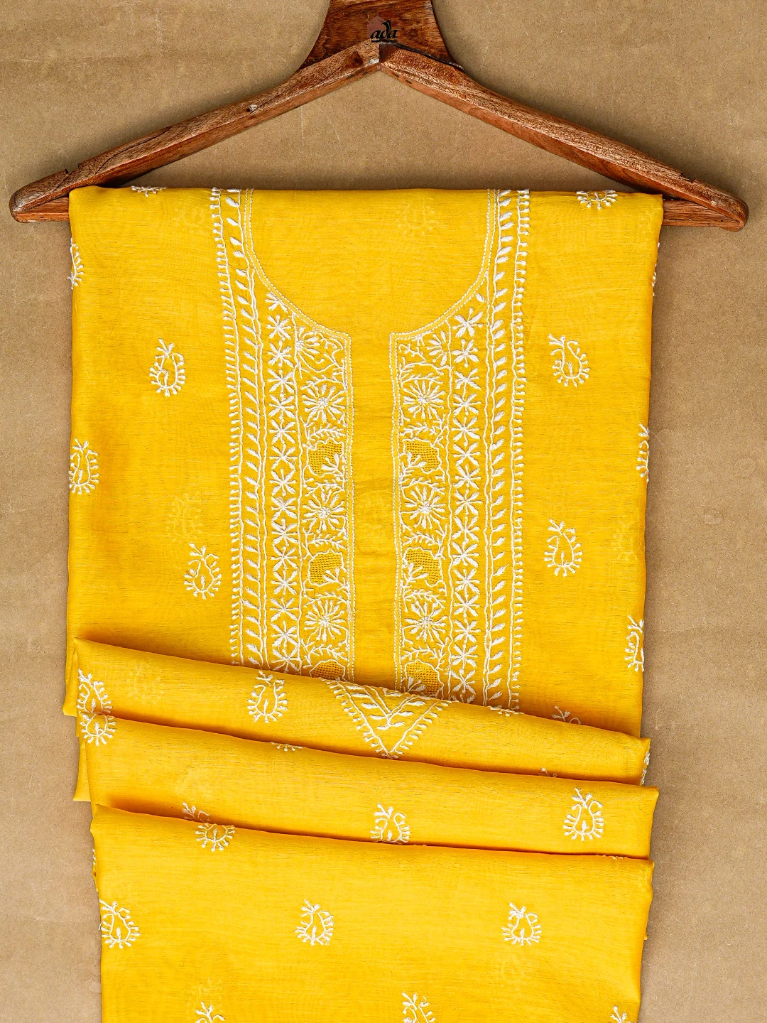 Ada Hand Embroidered Yellow Chanderi Lucknowi Chikankari Unstitched Men's Kurta Piece 01A859984