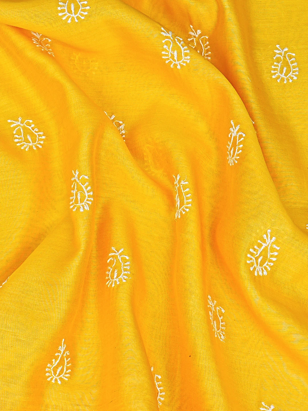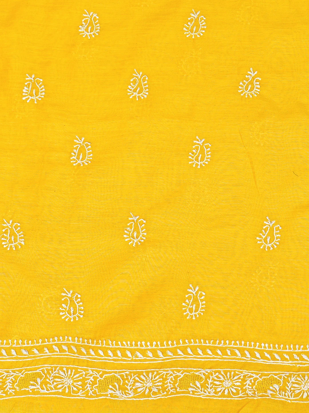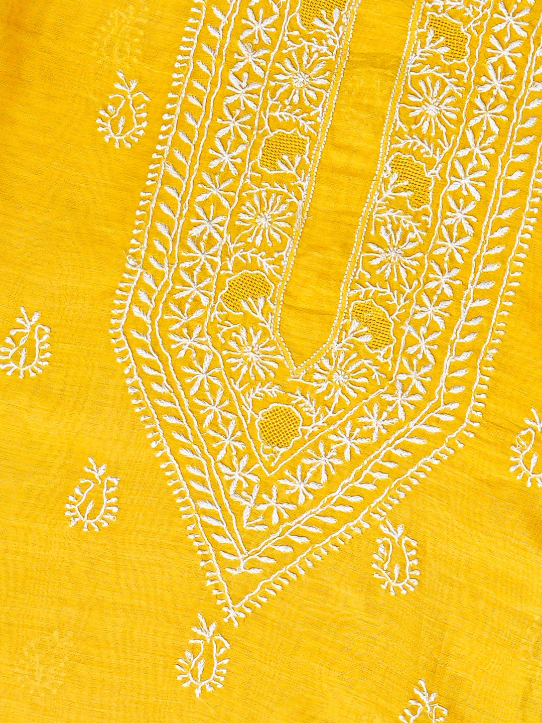 Ada Hand Embroidered Yellow Chanderi Lucknowi Chikankari Unstitched Men's Kurta Piece 01A859984