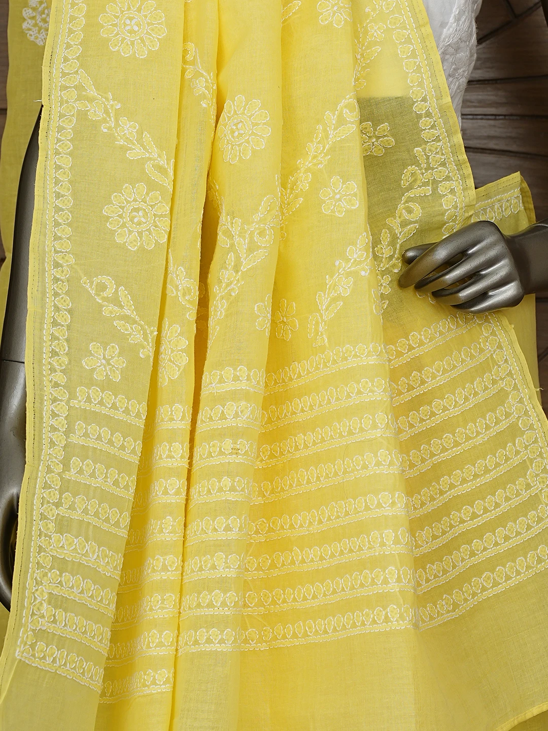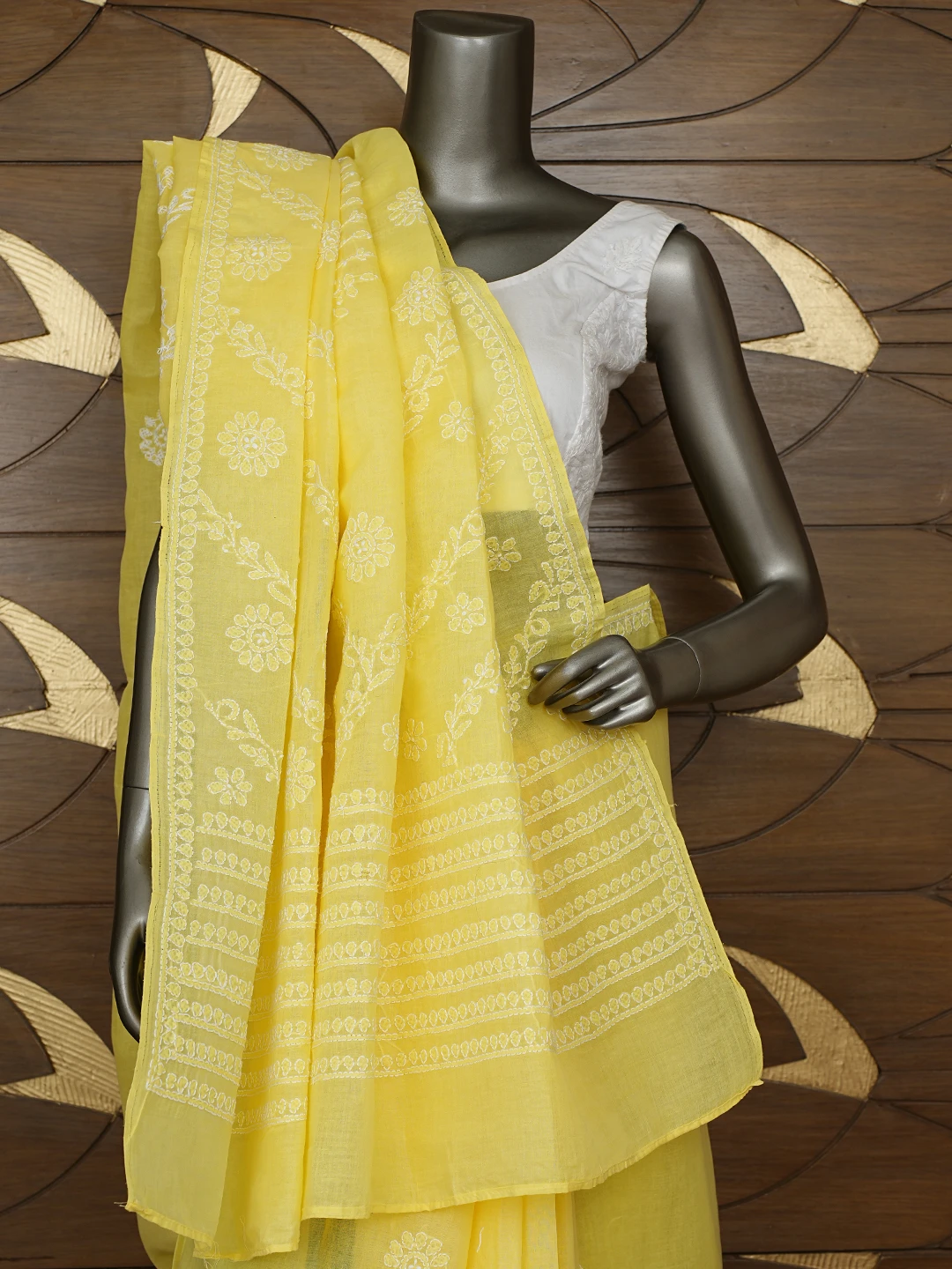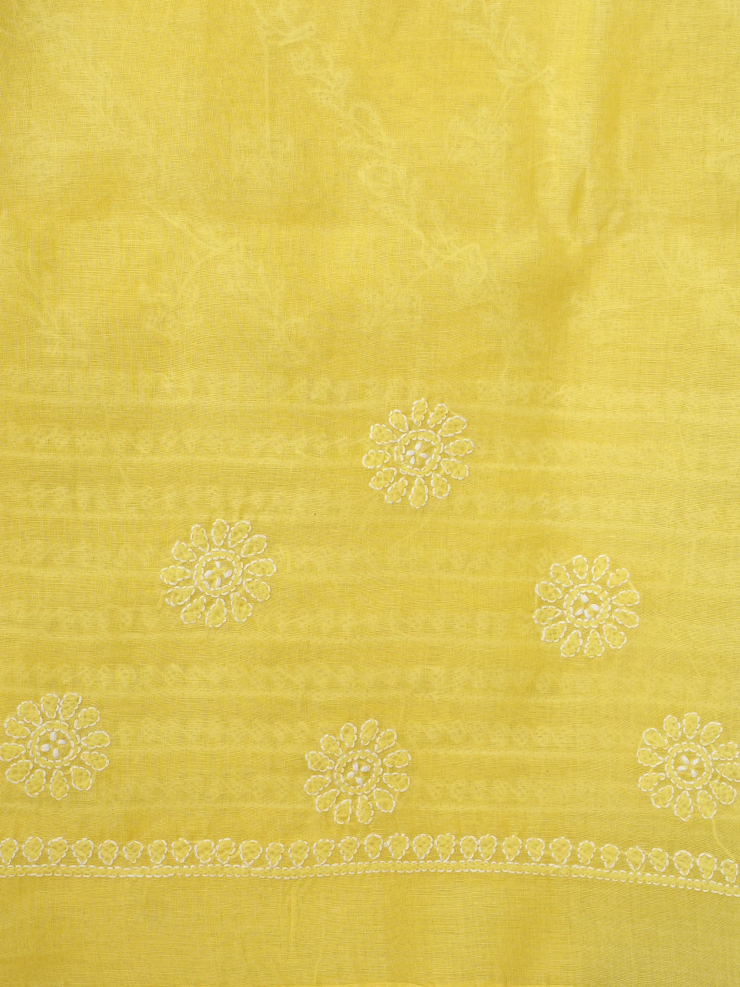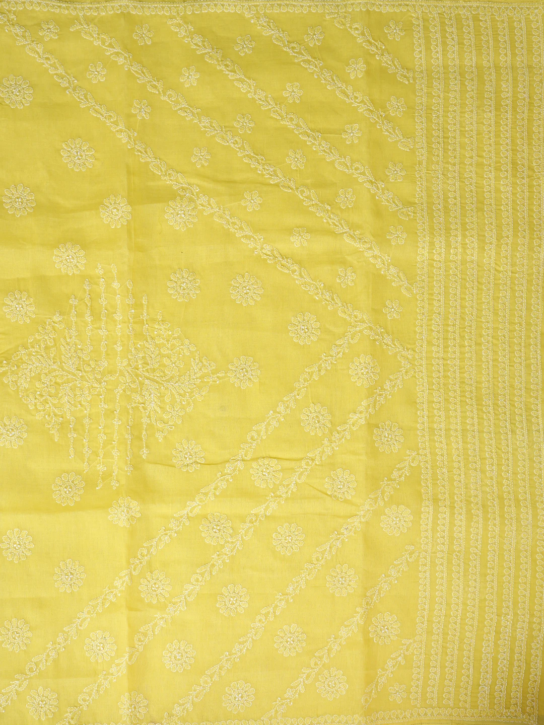 Ada Hand Embroidered Yellow Cotton Lucknowi Chikankari Saree With Blouse 01A866235