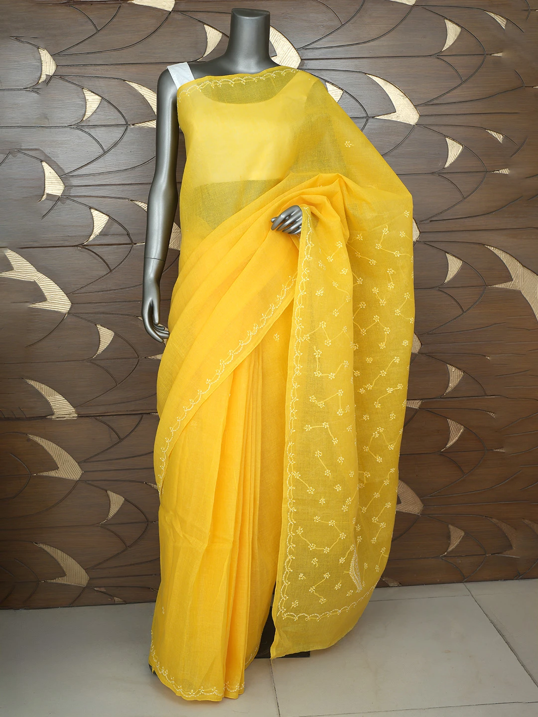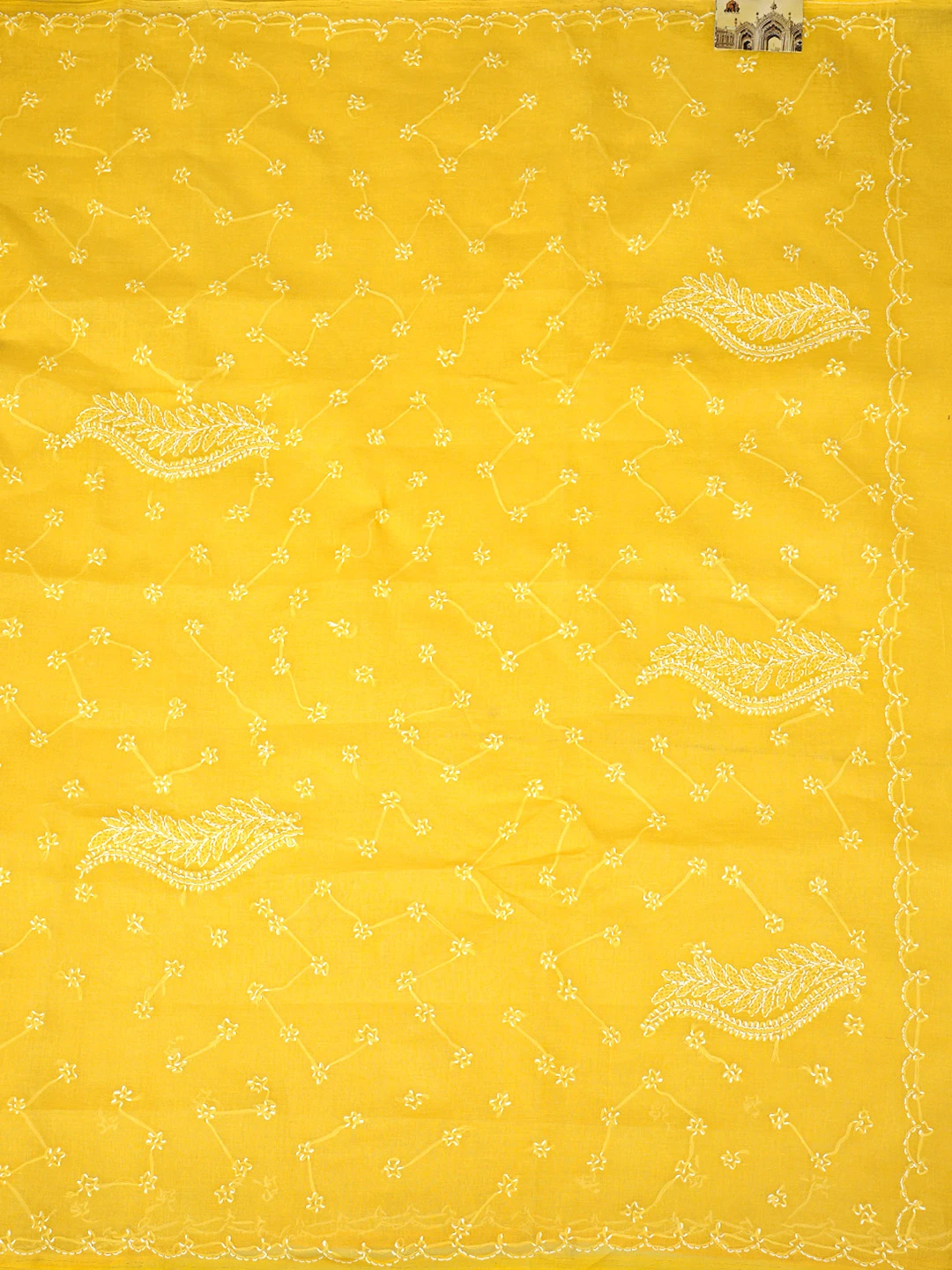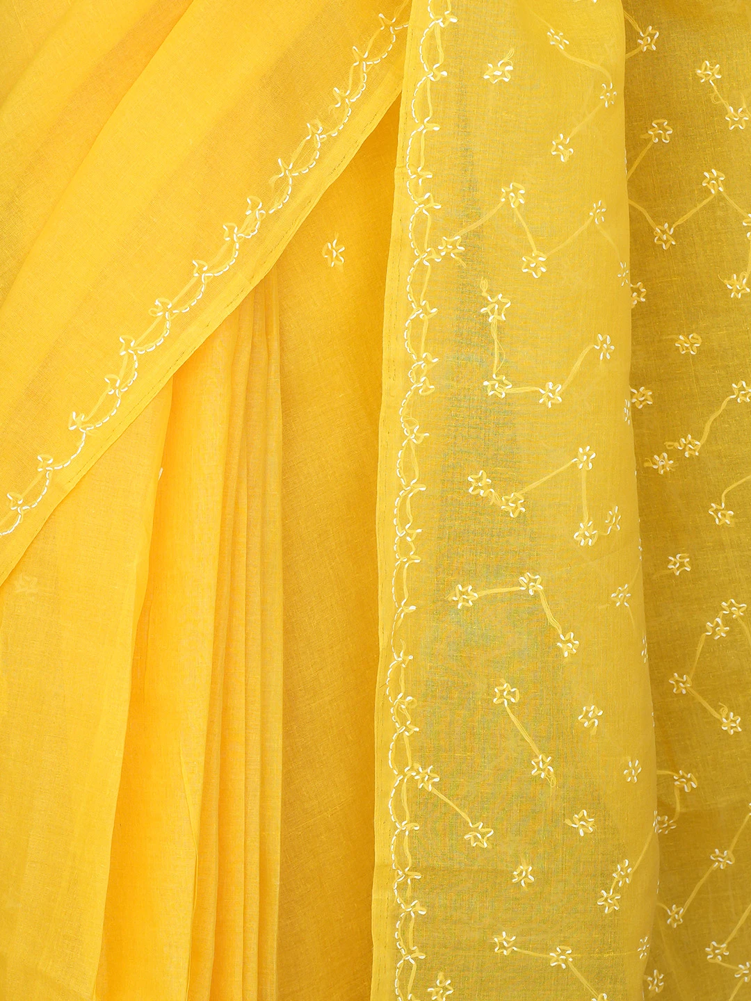 Ada Hand Embroidered Yellow Cotton Lucknowi Chikankari Saree With Blouse 01A882876