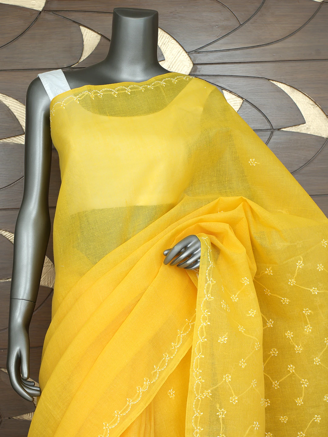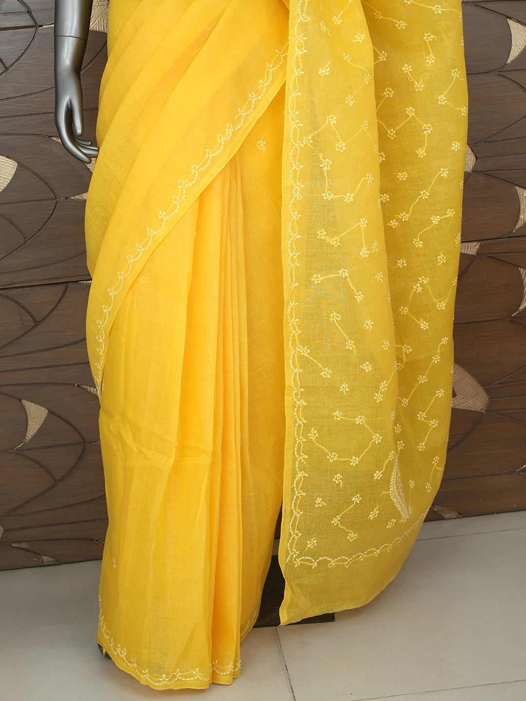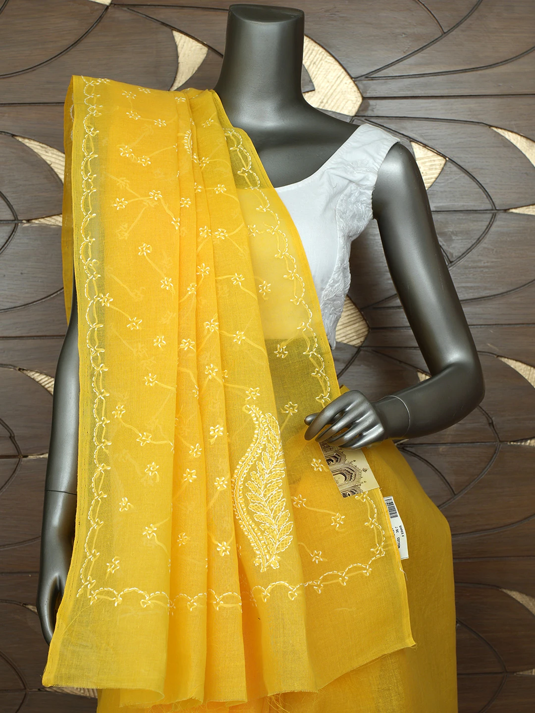 Ada Hand Embroidered Yellow Cotton Lucknowi Chikankari Saree With Blouse 01A882876