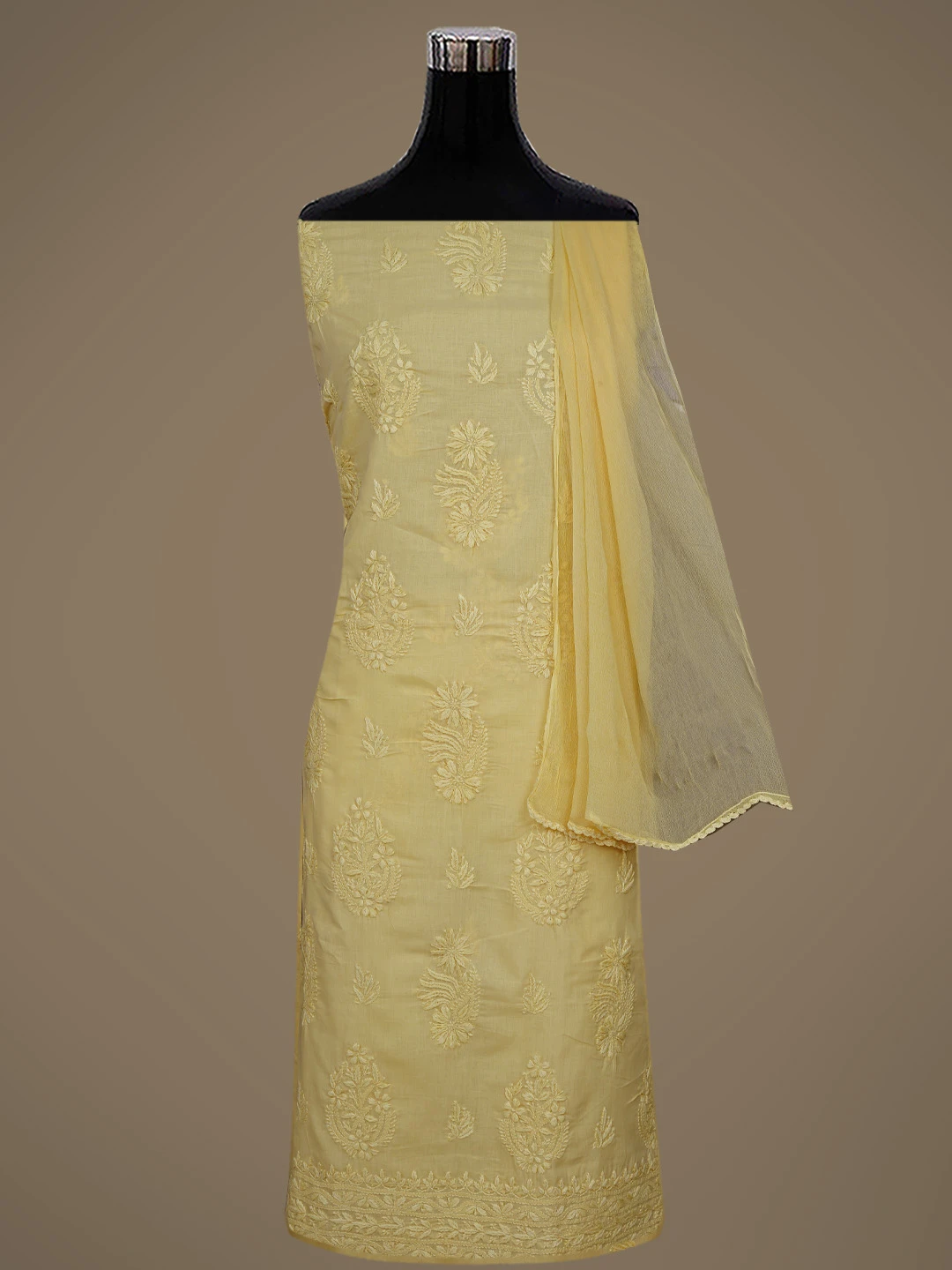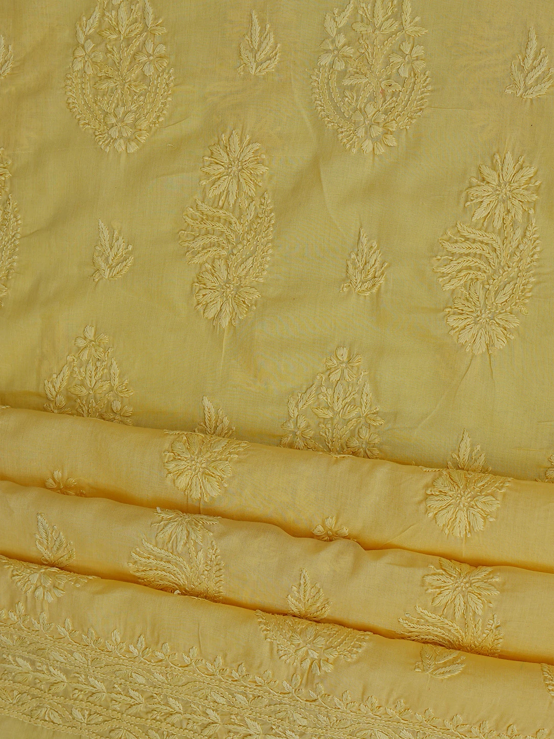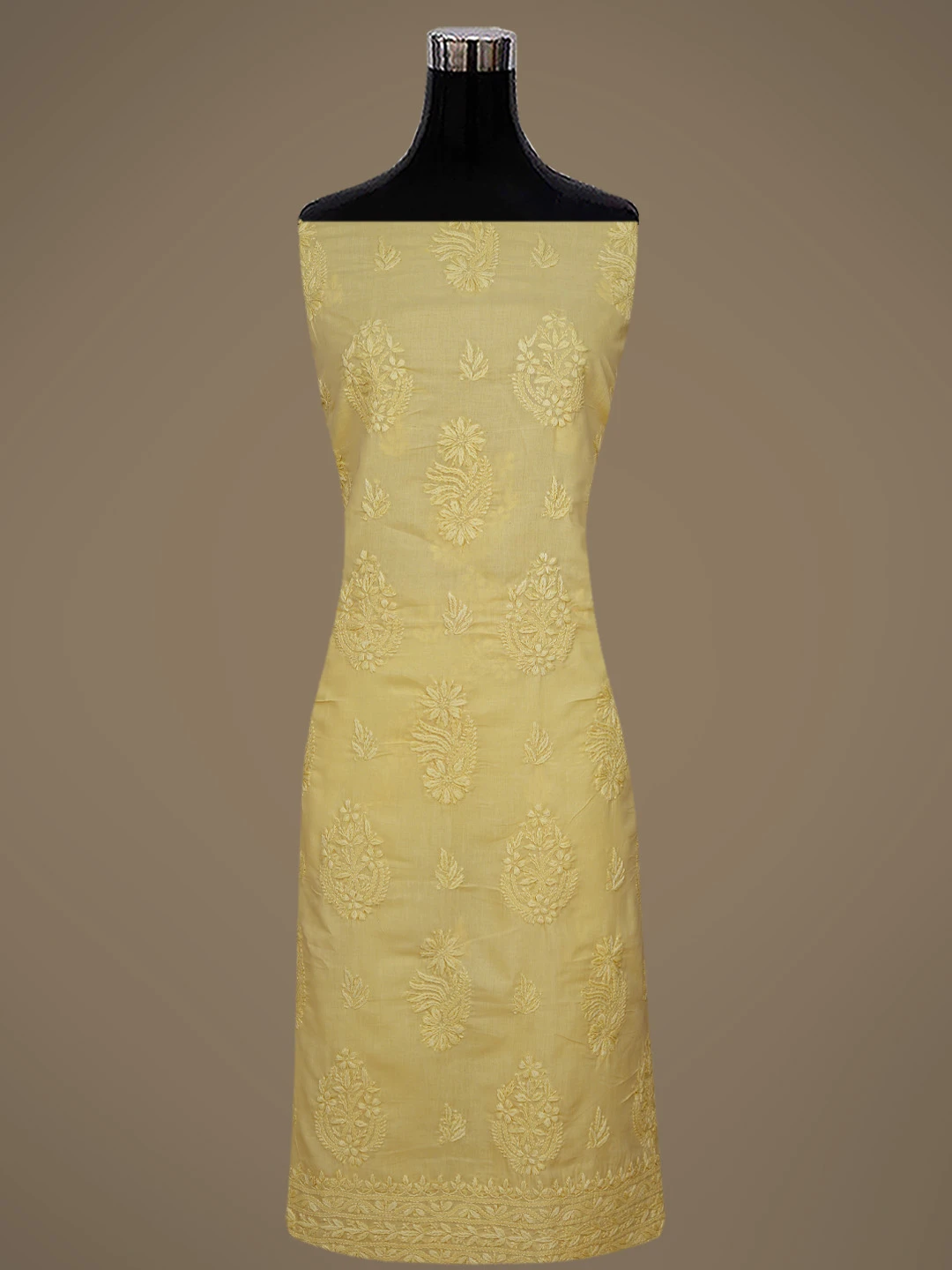 Ada Hand Embroidered Yellow Cotton Lucknowi Chikankari Unstitched Suit Piece 01A488959