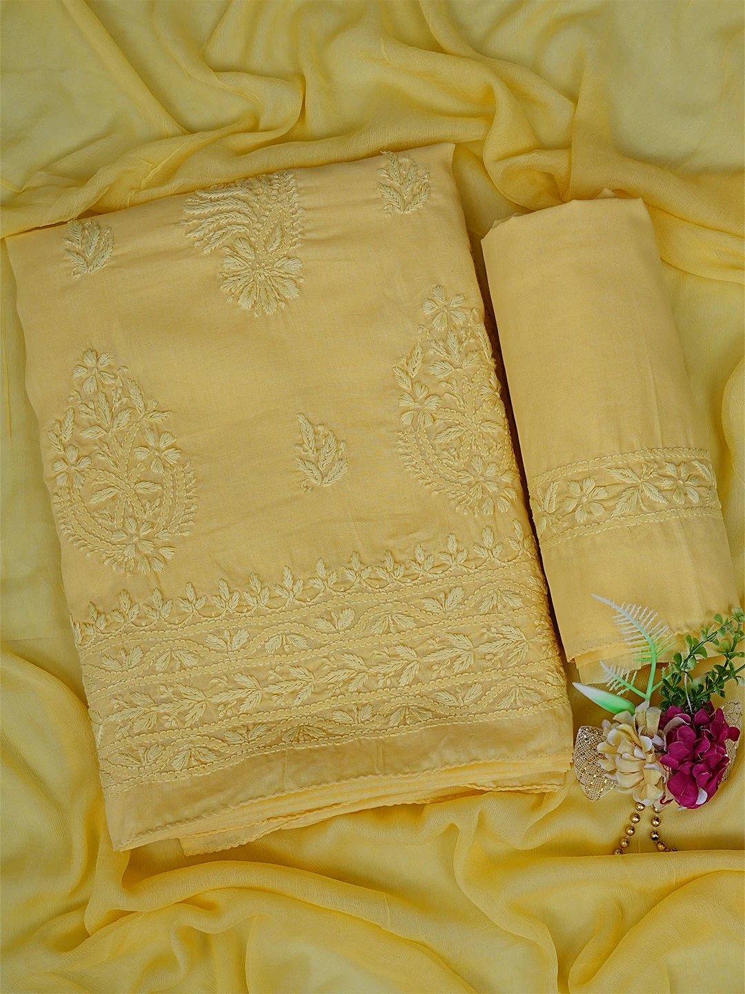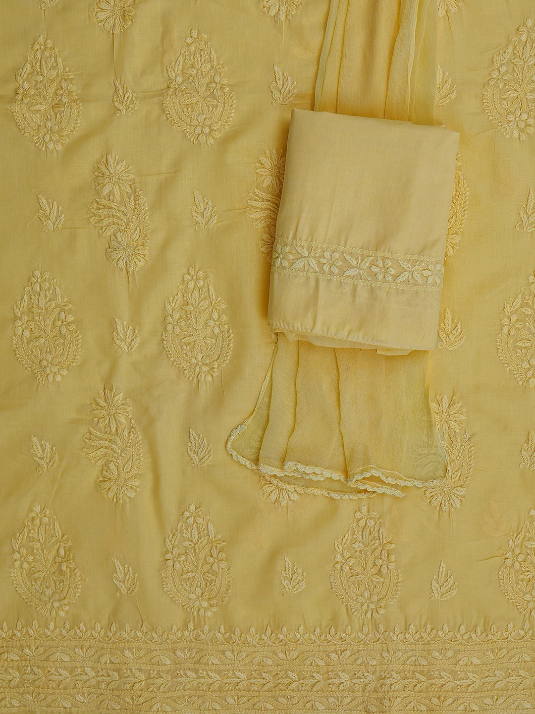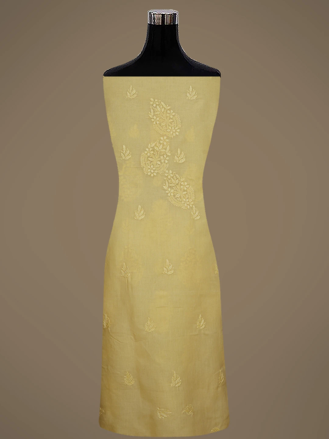 Ada Hand Embroidered Yellow Cotton Lucknowi Chikankari Unstitched Suit Piece 01A488959