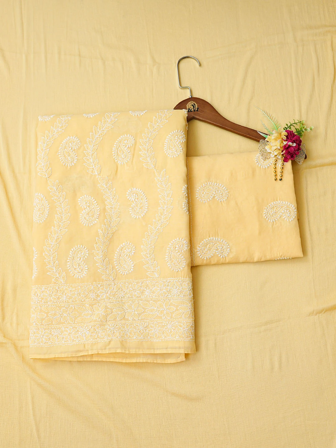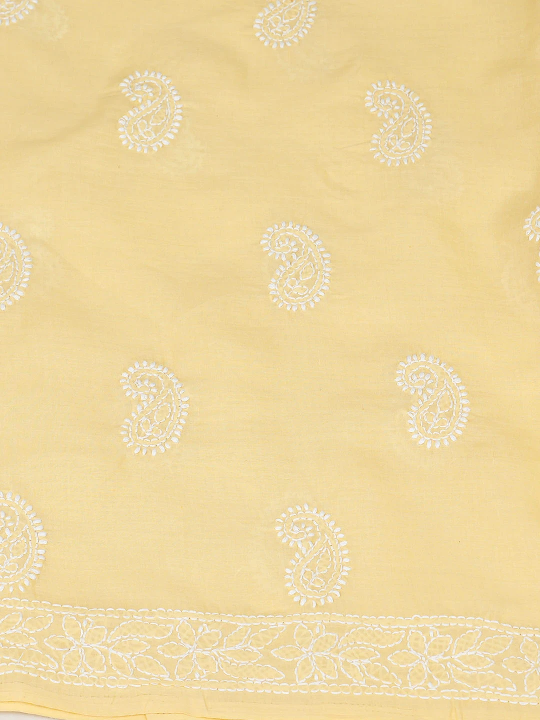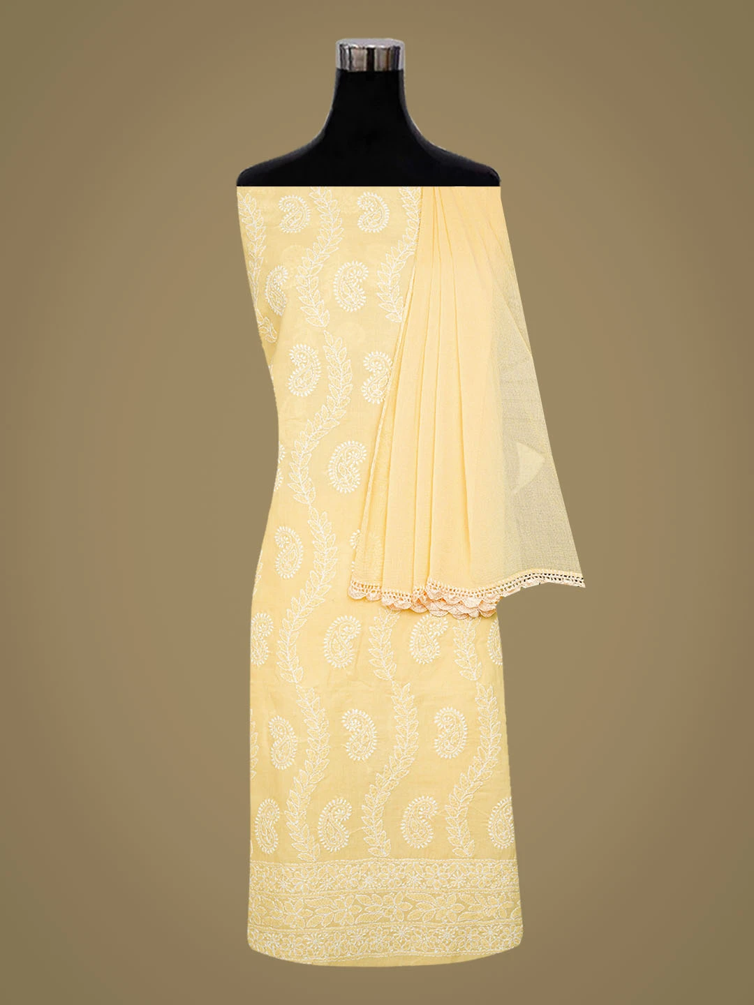 Ada Hand Embroidered Yellow Cotton Lucknowi Chikankari Unstitched Suit Piece 01A861454