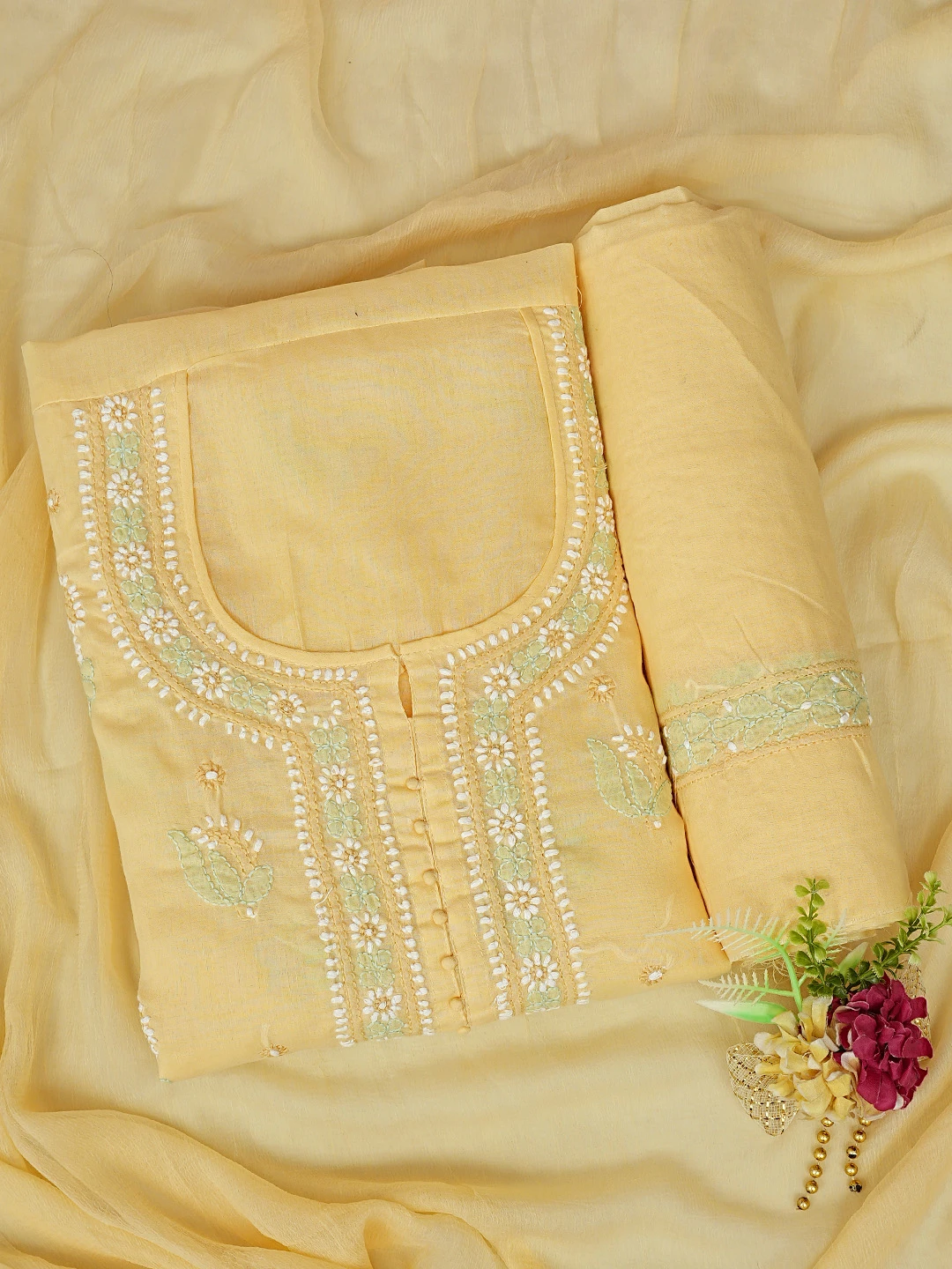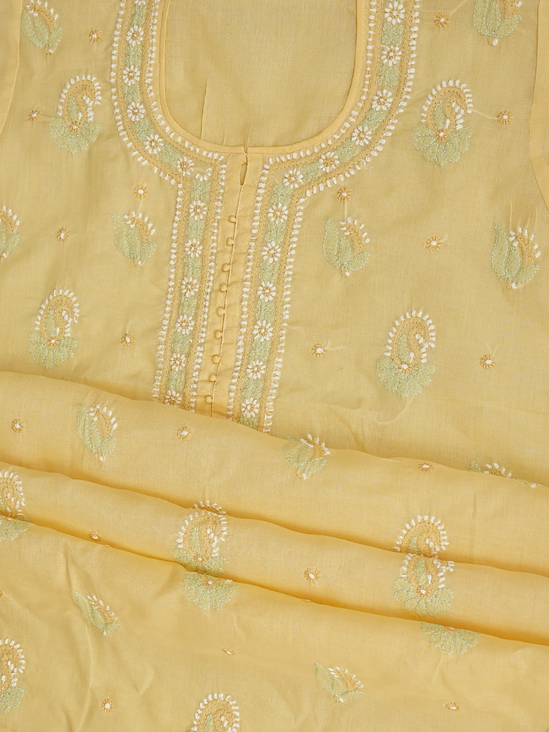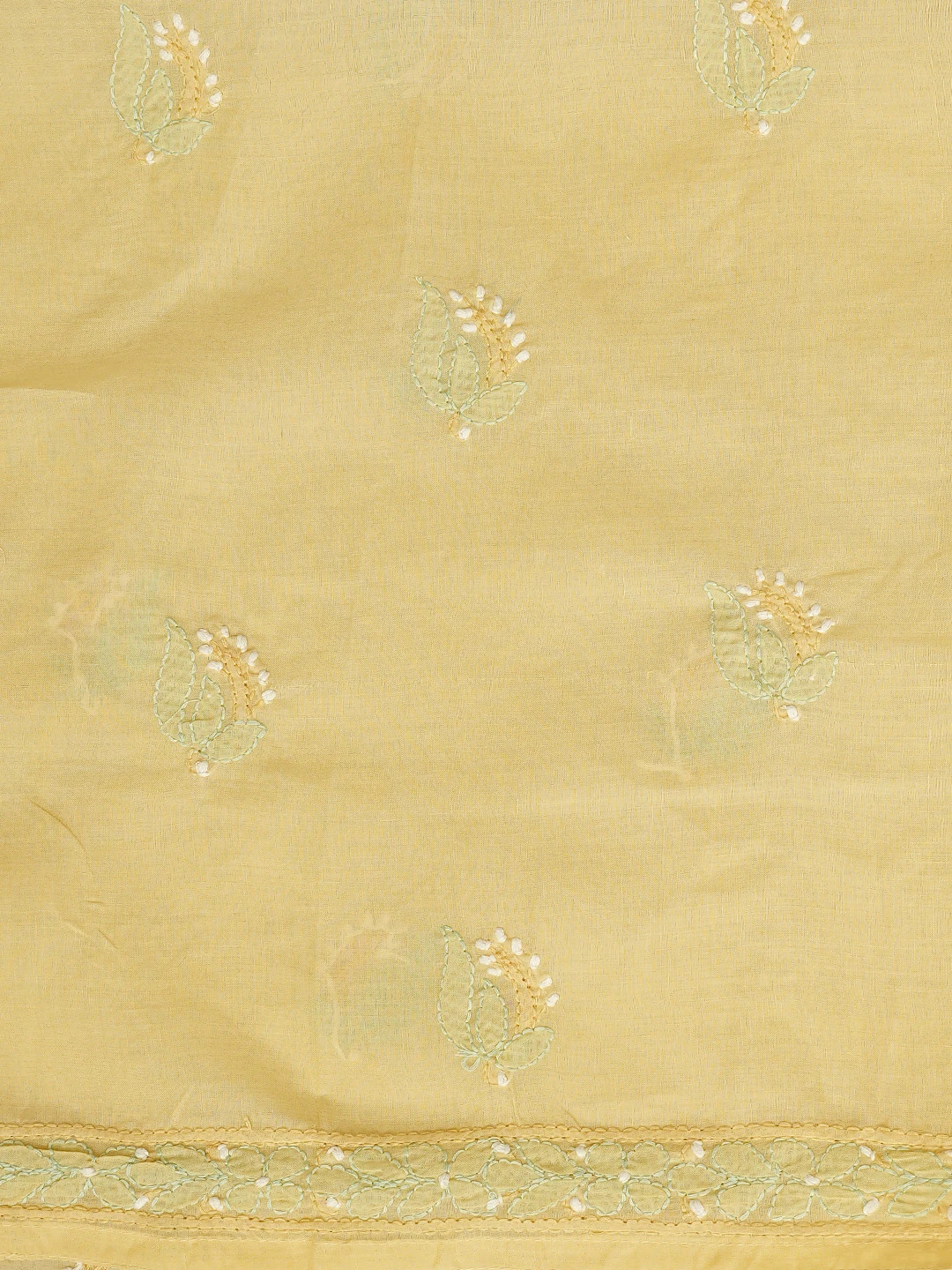 Ada Hand Embroidered Yellow Cotton Lucknowi Chikankari Unstitched Suit Piece 01A879776