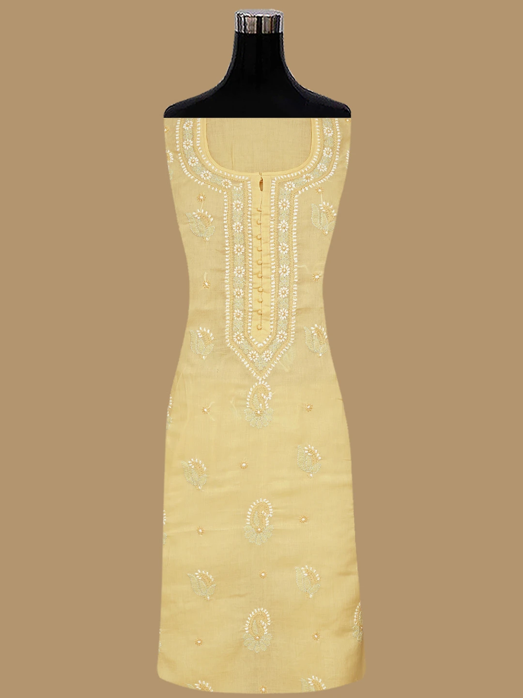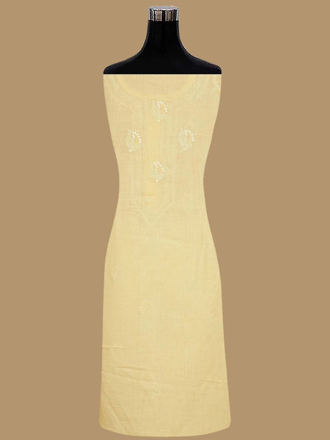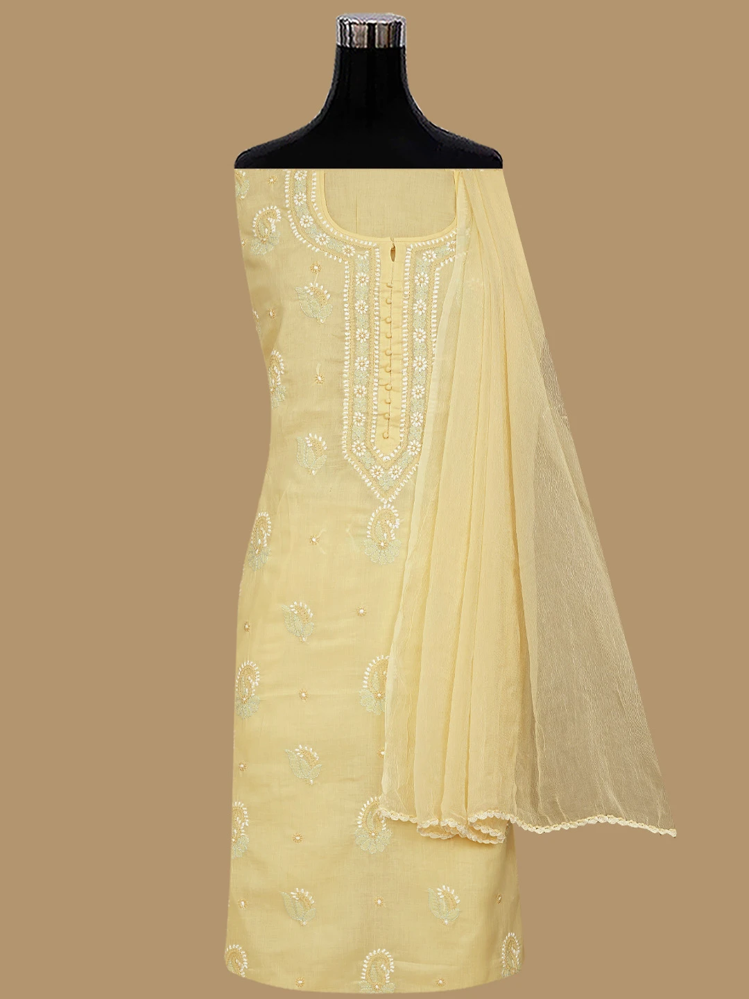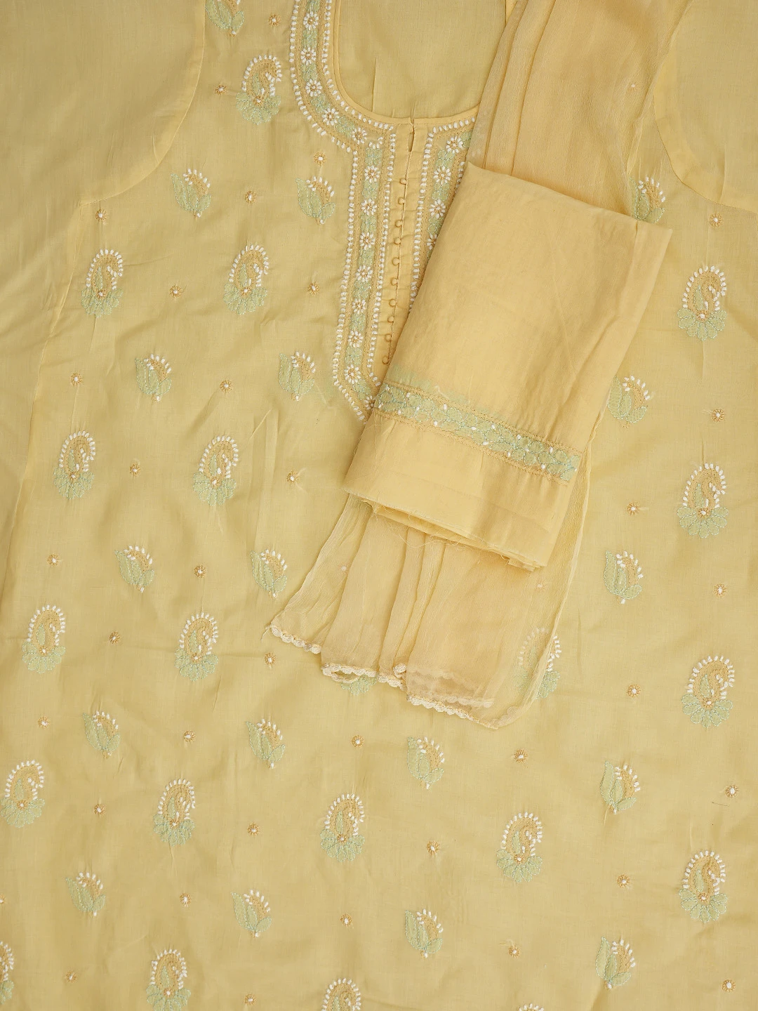 Ada Hand Embroidered Yellow Cotton Lucknowi Chikankari Unstitched Suit Piece 01A879776