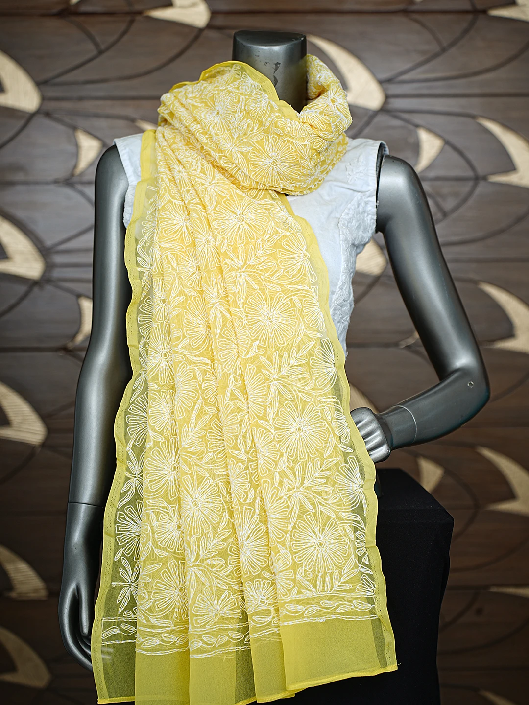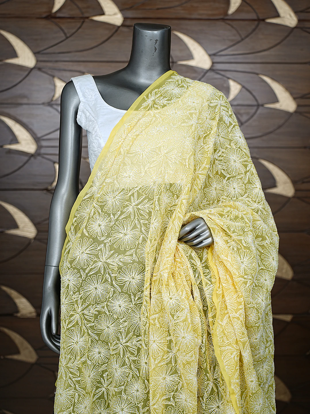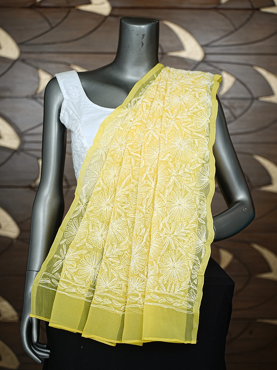 Ada Hand Embroidered Yellow Georgette Lucknowi Chikankari Dupatta 01A791221