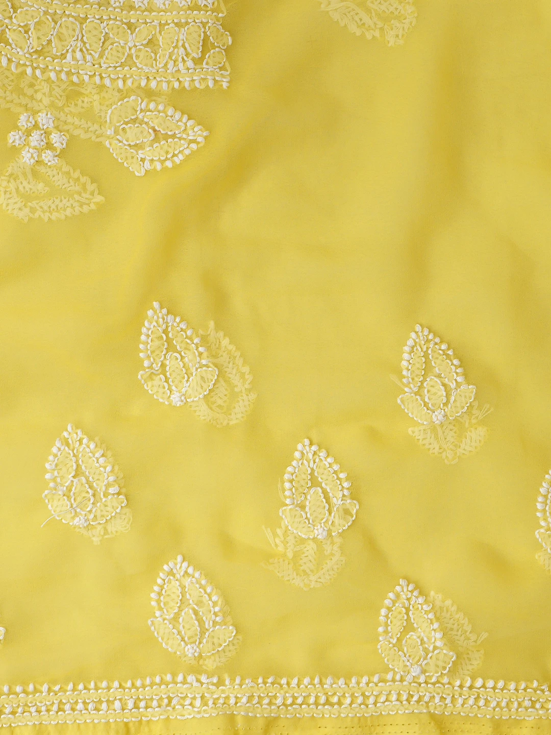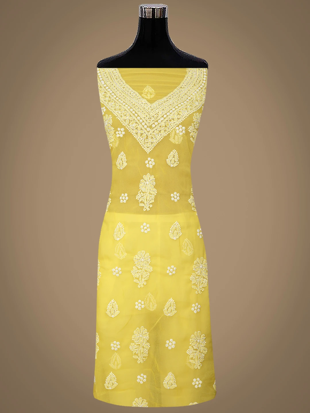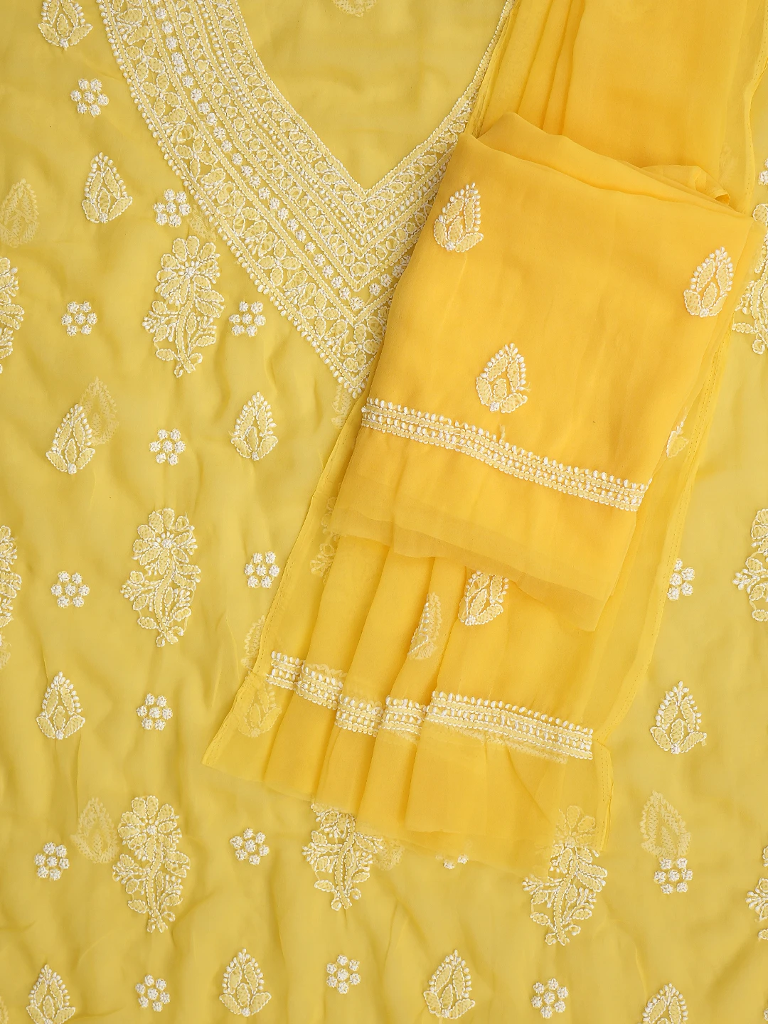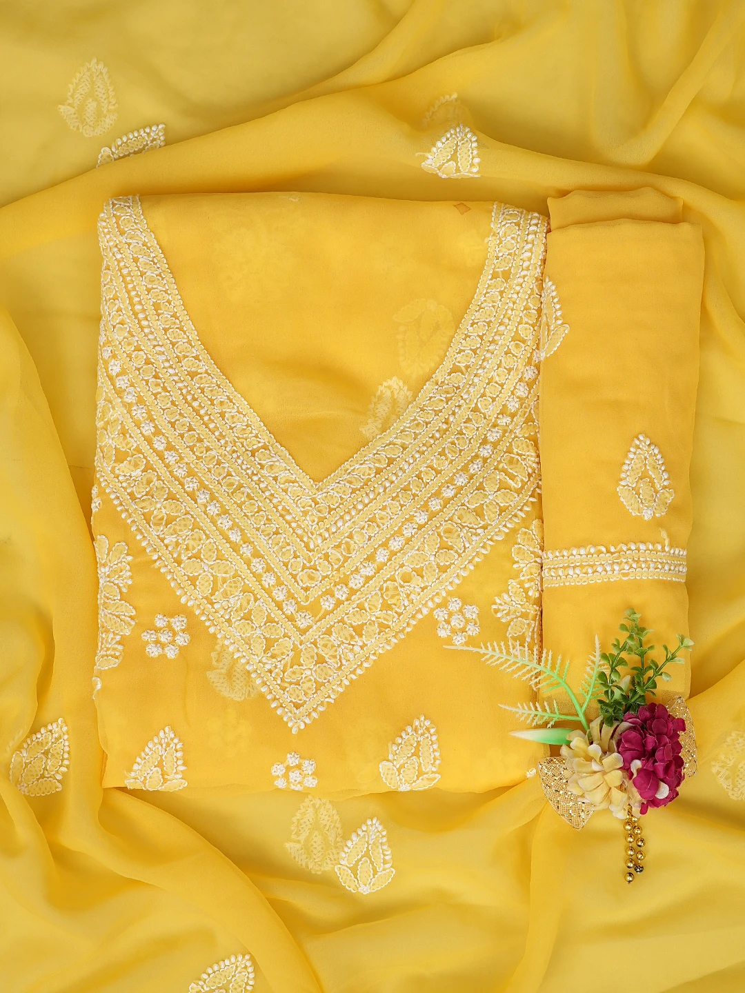 Ada Hand Embroidered Yellow Georgette Lucknowi Chikankari Unstitched Suit Piece 01A866866