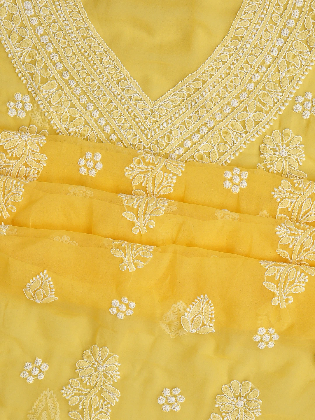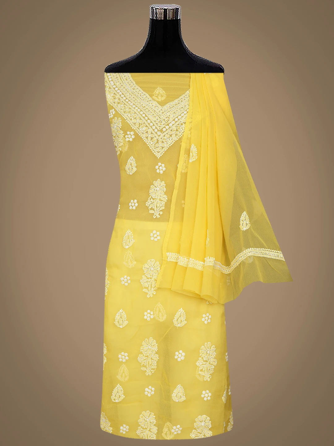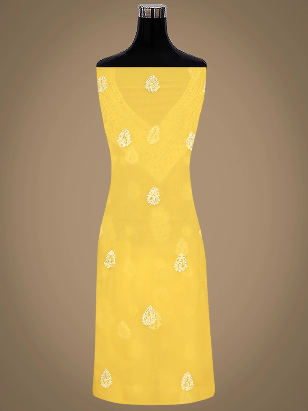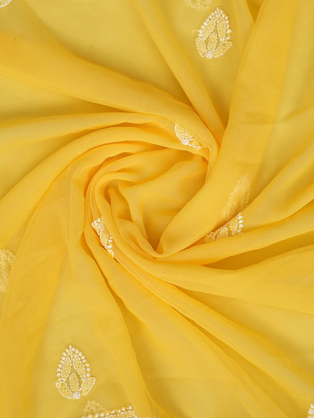 Ada Hand Embroidered Yellow Georgette Lucknowi Chikankari Unstitched Suit Piece 01A866866