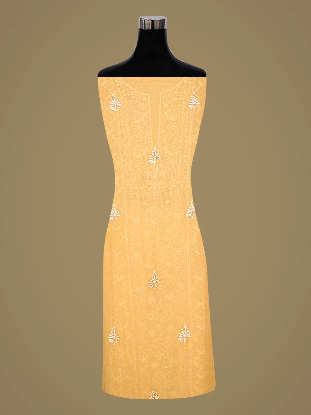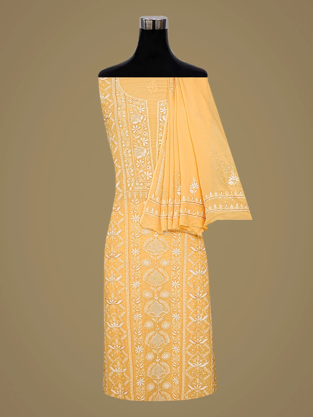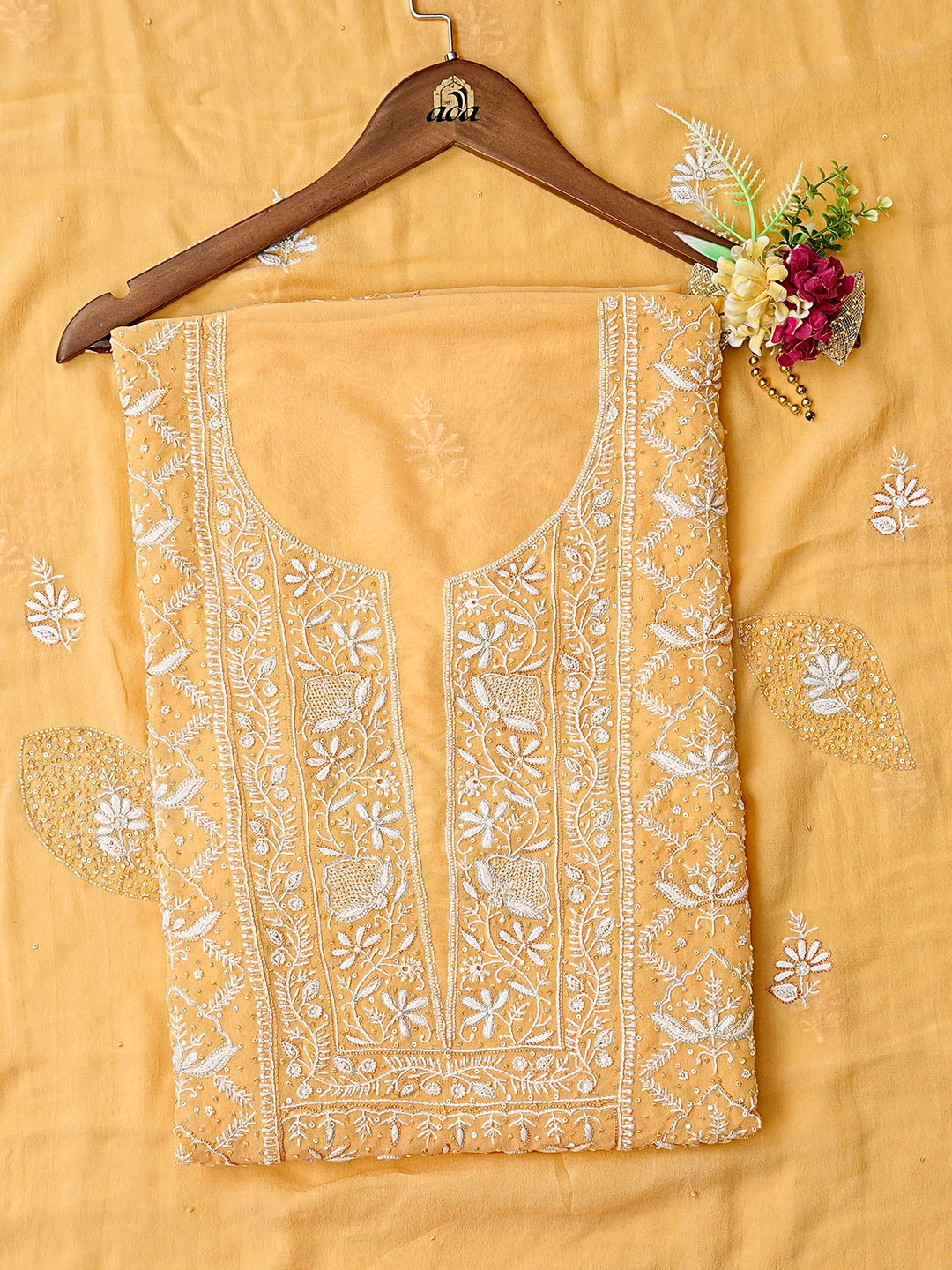Ada Hand Embroidered Yellow Pure Georgette Lucknowi Chikankari Unstitched Kurta Dupatta Set With Cutdana Work 01A712919