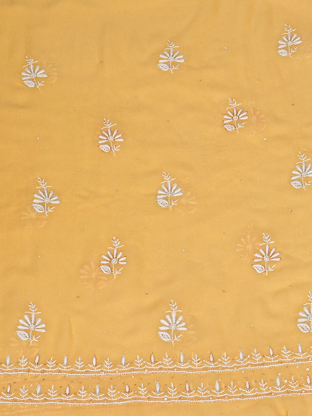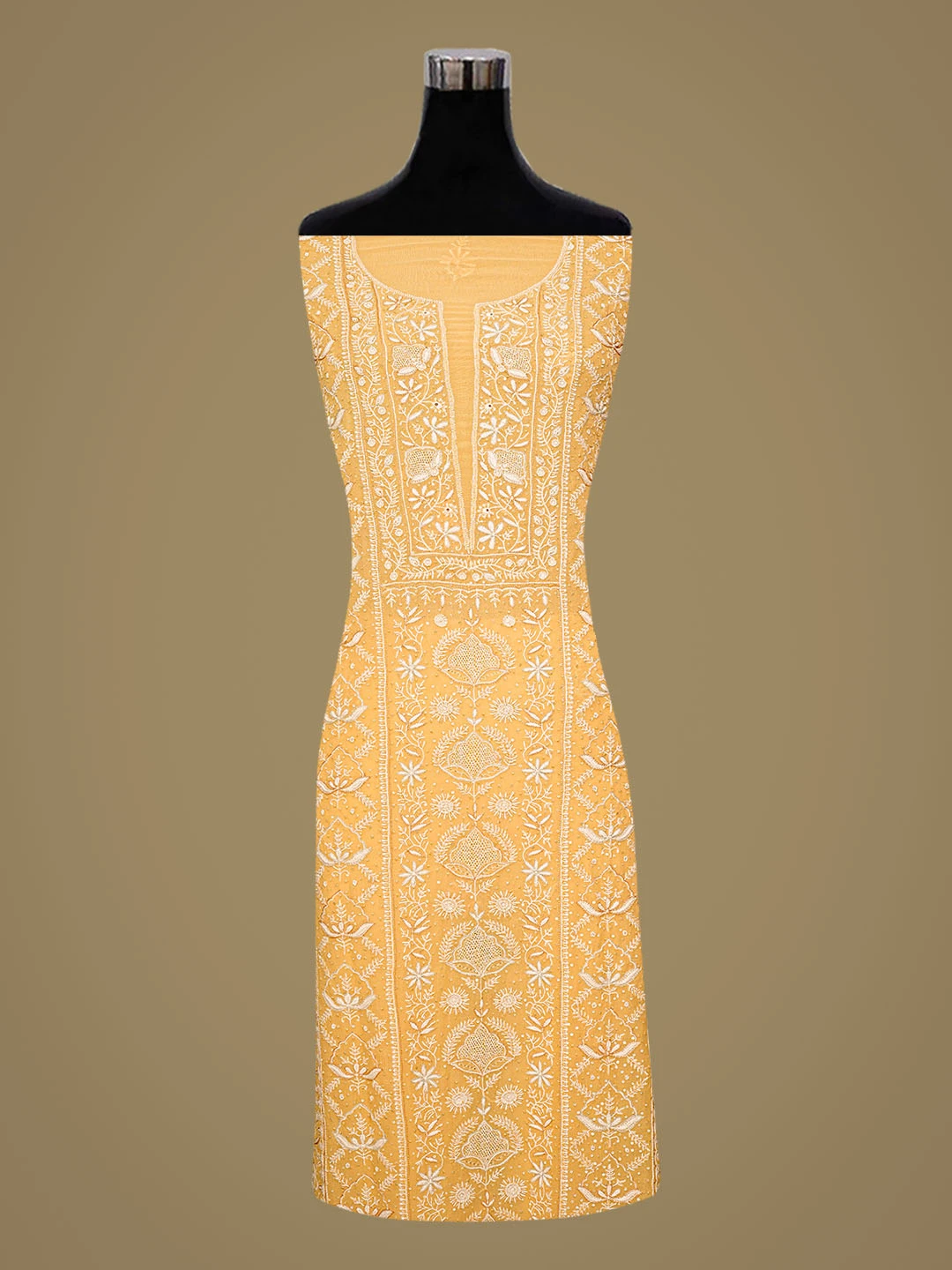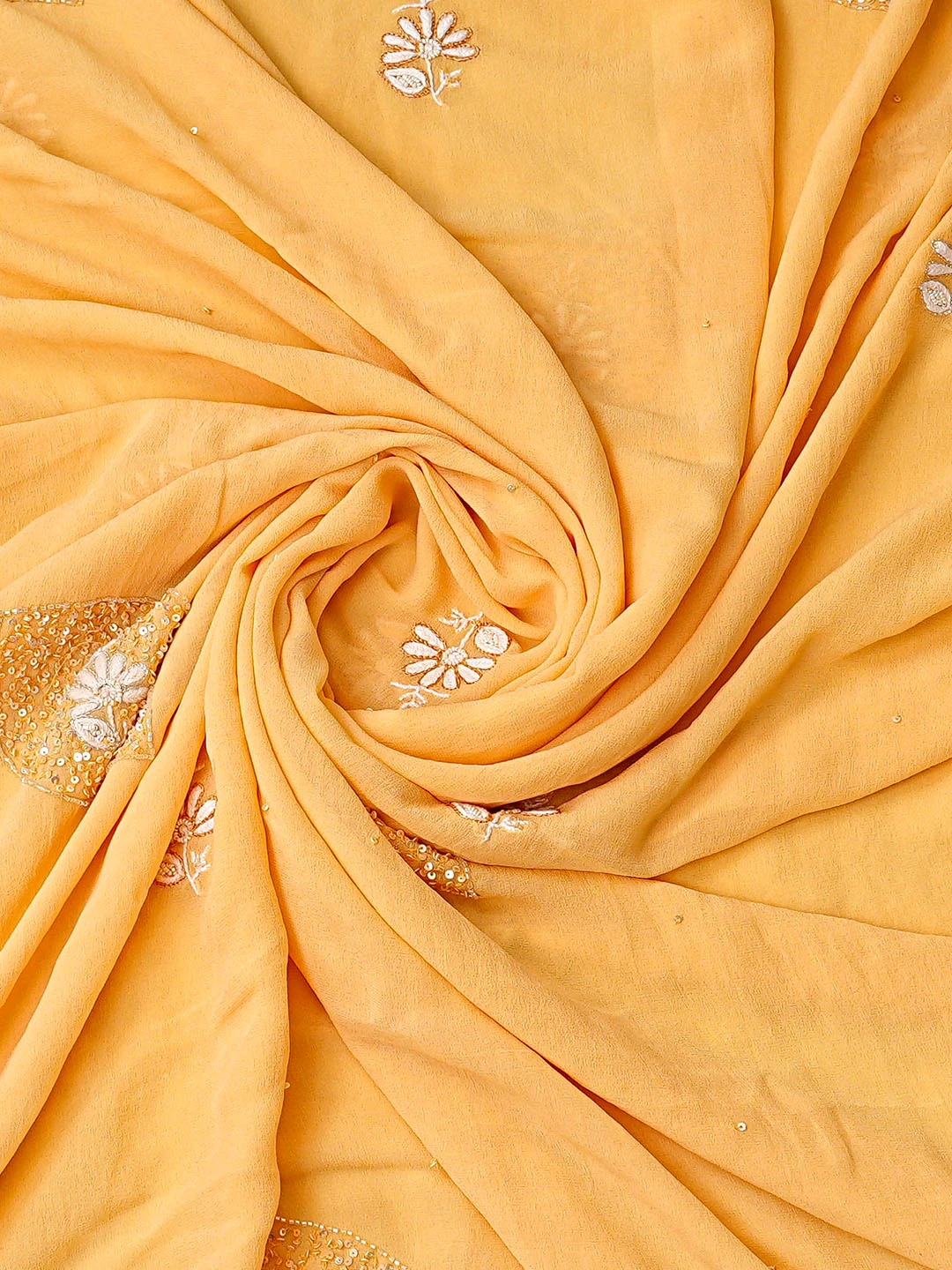 Ada Hand Embroidered Yellow Pure Georgette Lucknowi Chikankari Unstitched Kurta Dupatta Set With Cutdana Work 01A712919