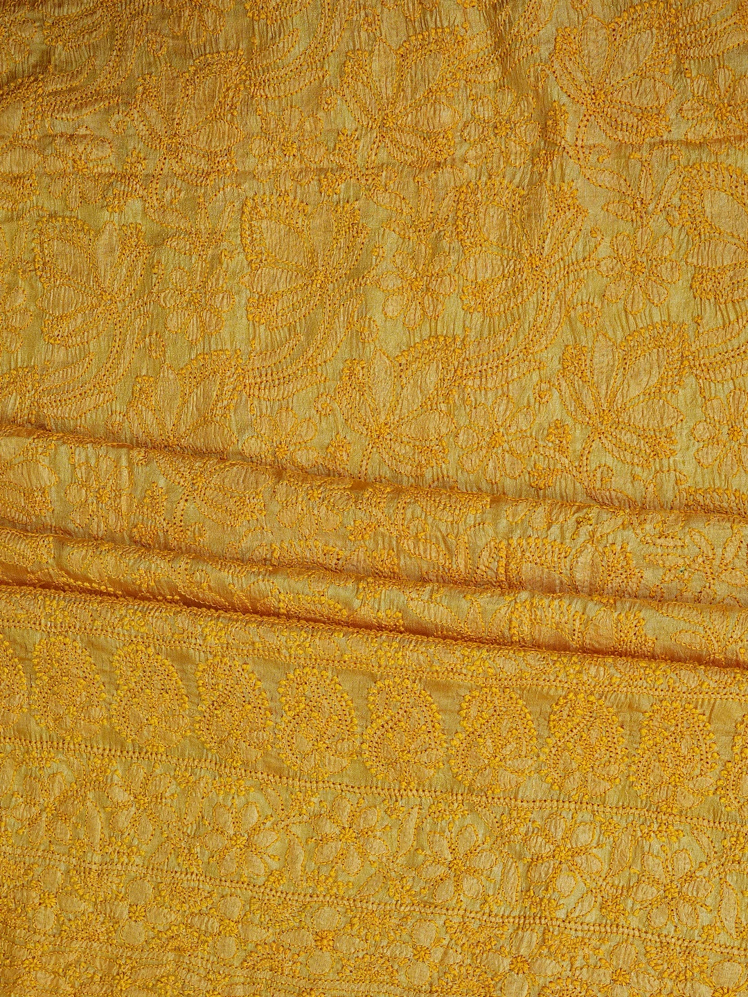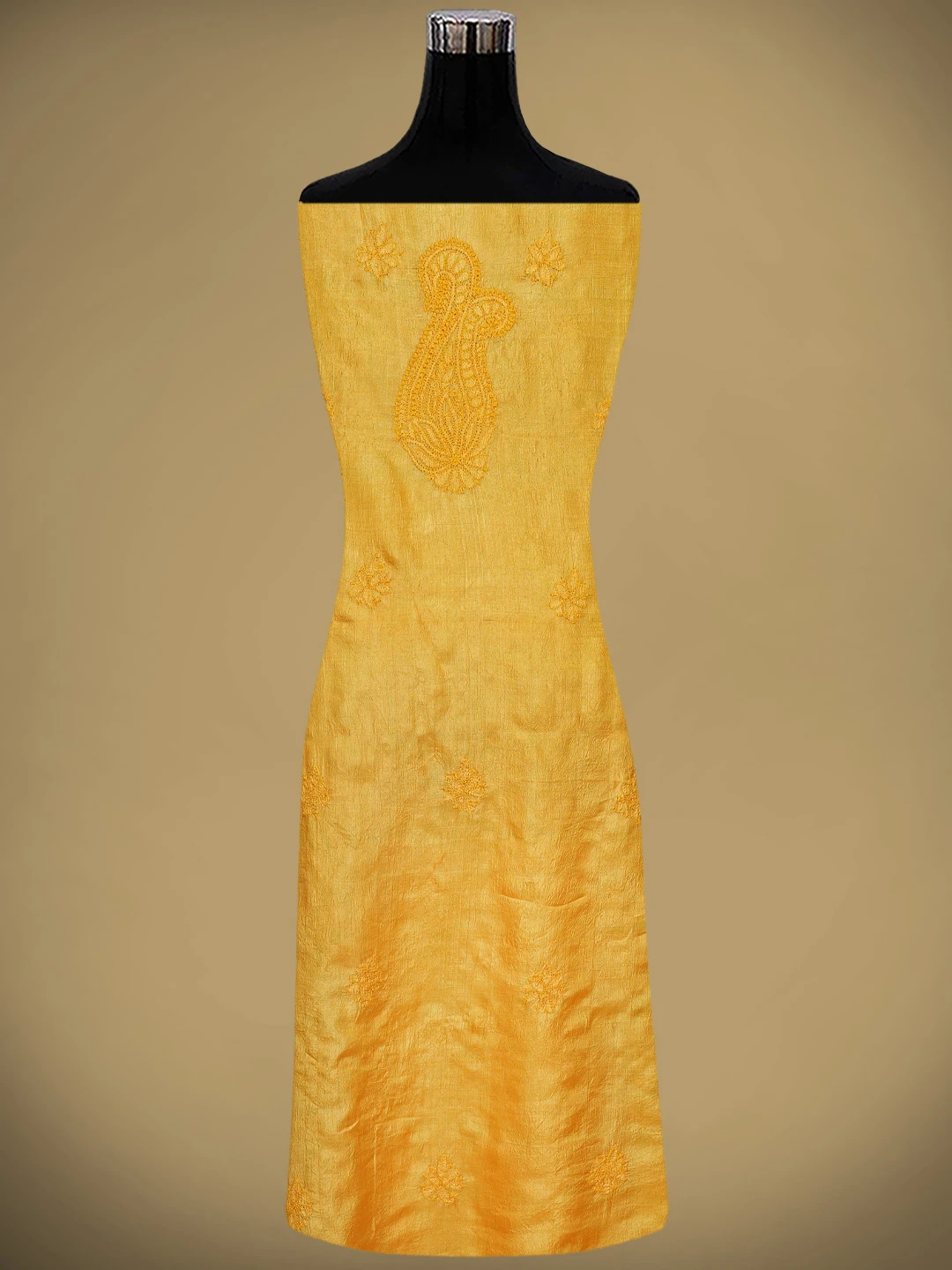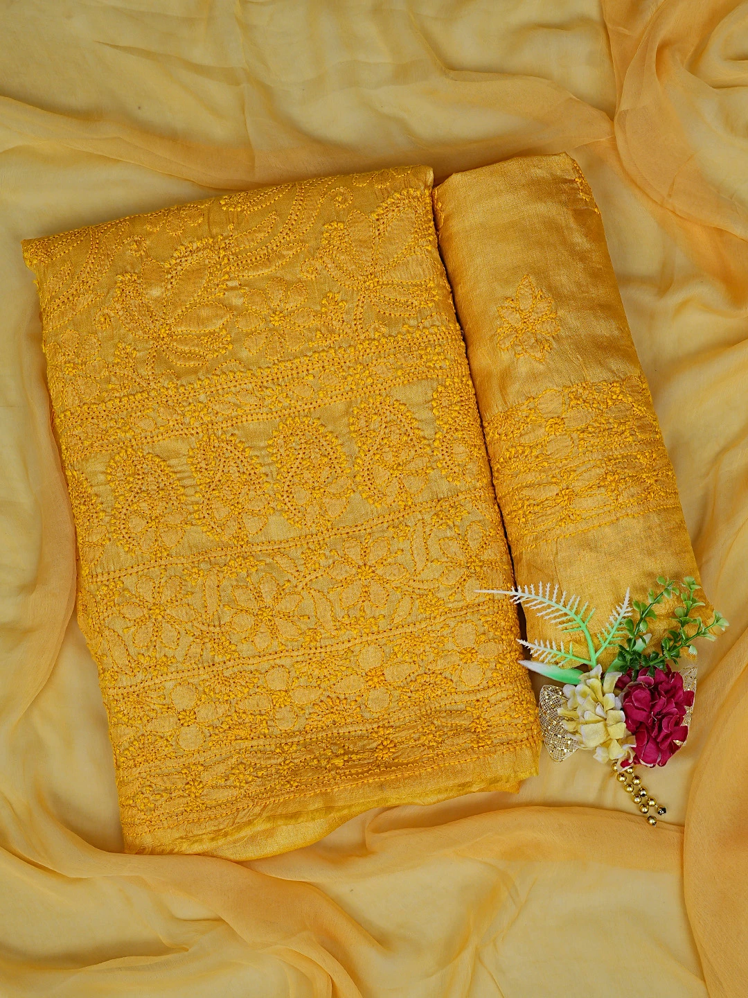 Ada Hand Embroidered Yellow Tussar Silk Lucknowi Chikankari Unstitched Suit Piece 01A763499