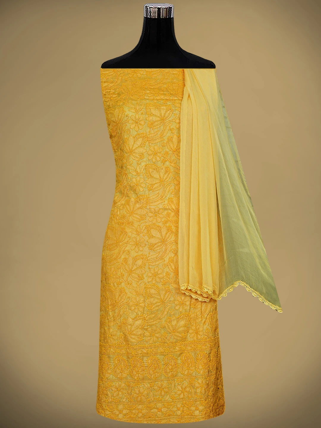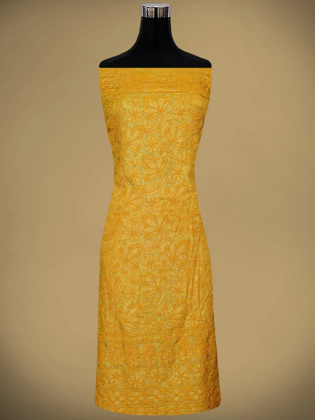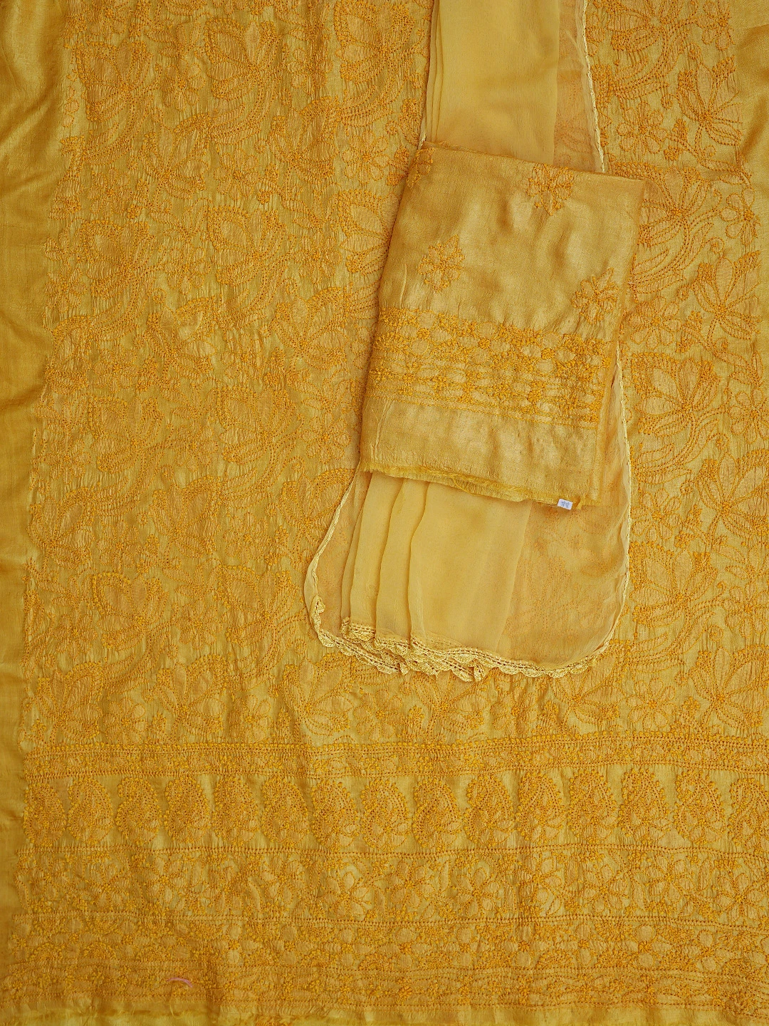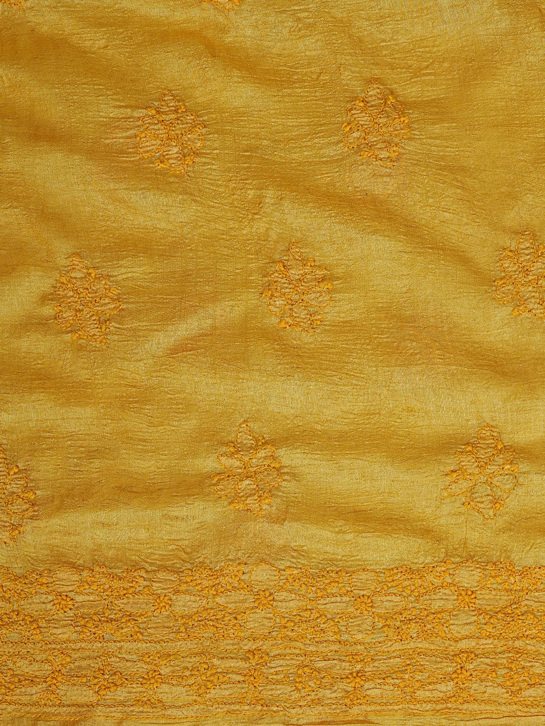 Ada Hand Embroidered Yellow Tussar Silk Lucknowi Chikankari Unstitched Suit Piece 01A763499